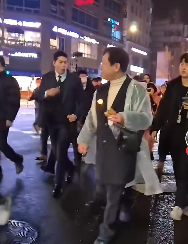 老李太随意了!这身行头同等身份的没有几个人会穿 老李到了北京迫不及待的走到街头,北京室外温度零下十几度,老李衣着单薄,他真抗冻! 当晚天下起了小雨,老李身穿雨衣,手里拿着美食,边走边吃,从表情看对中国美食非常喜欢,手里还拿着垃圾袋,大摇大摆的走在大街上,老李太随意了。