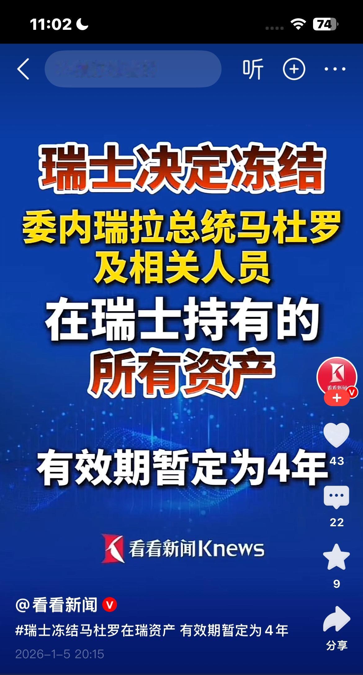 “中立国”瑞士表态了 瑞士联邦委员会5日发表声明说,瑞士决定冻结委内瑞拉总统马杜罗及相关人员在瑞士持有的所有资产。此项资产冻结令立即生效,有效期暂定为4年。 瑞士这一手“落井下石”,时机选得那叫一个精准。美军1月3日凌晨才把马杜罗带走,不到两天,瑞士的冻结令就跟着来了。嘴上说是根据国内相关联邦法案行事,防止“潜在非法资产外流”,可这迅雷不及掩耳的动作,很难不让人联想是在配合谁的节奏。所谓“中立”,此刻显得格外刺眼。 仔细看瑞士的声明,里面藏着不少心机。它特别强调,冻结只针对马杜罗及其关联人员,不影响委内瑞拉“现任政府”其他成员。这看似是精准打击,实则是一手精妙的政治切割。瑞士似乎在向外界传递一个信号:我们反对的不是委内瑞拉这个国家,而是已被美国定义为“罪犯”的马杜罗个人。这等于变相否定了马杜罗的政治身份,为美国行动的“合法性”做了个金融上的注脚。 瑞士的中立招牌,这些年早已裂纹密布。从二战期间与纳粹德国的暧昧经济往来,到后来成为全球富豪的避税天堂和财富保险柜,它的“中立”本质上服务于其金融帝国的利益。一旦核心利益或外部压力大到一定程度,“中立”面具说摘就摘。这次冻结马杜罗资产,与其说是基于法律,不如说是一次基于强权政治风向的站队。它用行动重新定义了现代“中立”:在强者与弱者之间保持中立很难,但选择站在强者一边,永远“安全”。 这件事给全世界,尤其是发展中国家的领导人敲响了一记刺耳的警钟。如果你被视为某个大国的对手,那么你不仅人身可能遭遇风险,连你存放在所谓“中立安全港”的财富也可能一朝清零。瑞士声称若发现非法资金将寻求归还给委内瑞拉人民,但谁来定义“非法”?这笔钱未来的处置权,实际上已经从它的主人手里,转移到了地缘政治的牌桌上。 从马来西亚、塞尔维亚的愤怒谴责,到法国言论引发的风波,再到瑞士“快准狠”的金融制裁,围绕委内瑞拉事件的连锁反应正从政治、军事层面向经济、金融领域蔓延。这揭示了一个冷酷的现实:现代强权博弈是全方位的,军事行动只是序幕,后续跟上的金融、法律、舆论组合拳,才是真正锁死对手的枷锁。瑞士的举动,不过是这盘大棋中一步早有准备的棋罢了。 各位读者你们怎么看?欢迎在评论区讨论。