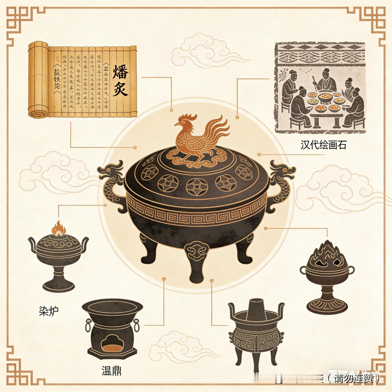 原来火锅是汉朝人的标配!考古挖出的神器,和现在的小火锅一模一样 汉朝的吃货早就解锁了“涮火锅”的快乐! 考古队挖出的汉代青铜染炉,直接就是迷你版小火锅——分上下两层,下层烧炭火保温,上层专门涮肉菜。 那时候的人聚餐,围着这小炉子边煮边吃,简直和咱们现在撸火锅的姿势没差! 趣味历史 古人的日常生活