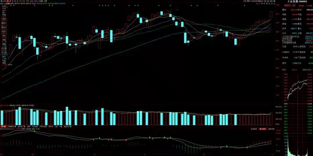 1月6日A股策略:三大重磅消息落地,A股中期上行趋势明确专注A股市场每日实战操作,助力散户投资者厘清方向、稳健布局!对于非长线投资者而言,若想在A股市场站稳脚跟,必须明晰:周密的布局计划仅能奠定良好开端,严格的操盘纪律方是收获盈利的核心关键。一、大势研判周一A股市场放量大涨,成交量从5000亿级别跃升至2.57万亿;技术形态层面,大盘斩获12连阳,且收出光头长阳线,彰显市场做多动能尚未完全释放,周二大盘大概率延续冲高走势。需要注意的是,若大盘在周一收盘点位进一步上行,将直面11月平台压力位,同时存在向上偏离5日线的超买风险。综合判断,周二大盘冲高震荡概率较大,周三转头回落的可能性有所提升。从中期视角来看,大盘上行趋势已基本确立,即便短线迎来技术性回调,回撤空间也相对有限。二、盘面跟踪周一沪深两市个股呈现普涨格局,上涨家数达4100家,下跌家数仅1100家,市场赚钱效应显著升温。板块表现方面,脑机接口板块领涨两市,指数单日涨幅高达13.7%,板块内个股集体爆发;但从盘后交易数据来看,机构与游资均以小幅加仓为主,追高意愿并不强烈。此外,大金融板块中的保险板块表现亮眼,指数涨幅超6%。在脑机接口板块的带动下,医药股整体走强,医疗器械、医疗服务、医药商业等细分方向领涨两市。跌幅榜上,仅有不到20个板块逆势下跌,海南本地股领跌,农业、零售等防御性板块表现相对疲软。从主线热点来看,除海南本地股外,其余主线板块均随大盘走强,且涨幅超越大盘指数,整体市场格局较为健康。三、消息面跟踪1. 高盛发布2026年中国市场展望报告:1月5日,高盛发布题为《中国2026年展望:探索新动能》的宏观报告,明确建议2026年高配中国股票。高盛股票策略团队此前已在亚太范围内建议高配A股和港股,并预计2026年、2027年中国股市将实现每年15%至20%的涨幅。2. CES 2026展会即将启幕,中国企业参展力度不减:1月6日至9日,2026年国际消费电子展(CES 2026)将在美国拉斯维加斯举办。据中国贸促会官方数据,本届展会共有7家组展单位组织207家中国企业参展,净展出面积超4900平方米。3. 拉美地缘局势再起波澜:继上周末军事突袭委内瑞拉后,美国总统特朗普将矛头指向其他拉美国家,警告称若哥伦比亚未能减少流入美国的非法毒品,或将成为下一个打击目标。四、市场资金面分析周一机构与游资操作呈现明显分歧。游资上周三中幅减仓后,本周一买盘小幅释放、卖盘小幅萎缩,整体持仓转为持平状态,并未选择追高加仓;机构则呈现高抛态势,买盘持续萎缩的同时卖盘中幅释放,资金转为中幅净流出。板块资金流向方面,主线热点中,机构与游资合力减仓商业航天板块;非主线热点里,二者合力小幅加仓脑机接口板块,但买入力度有限。进一步来看,机构存在向AI软件端调仓的迹象,而游资则对该方向进行减仓操作。当前机构与游资尚未在新热点上形成共识,市场主线热点暂时不会发生切换,后续需重点留意AI软件端能否承接资金,成为市场新主线。