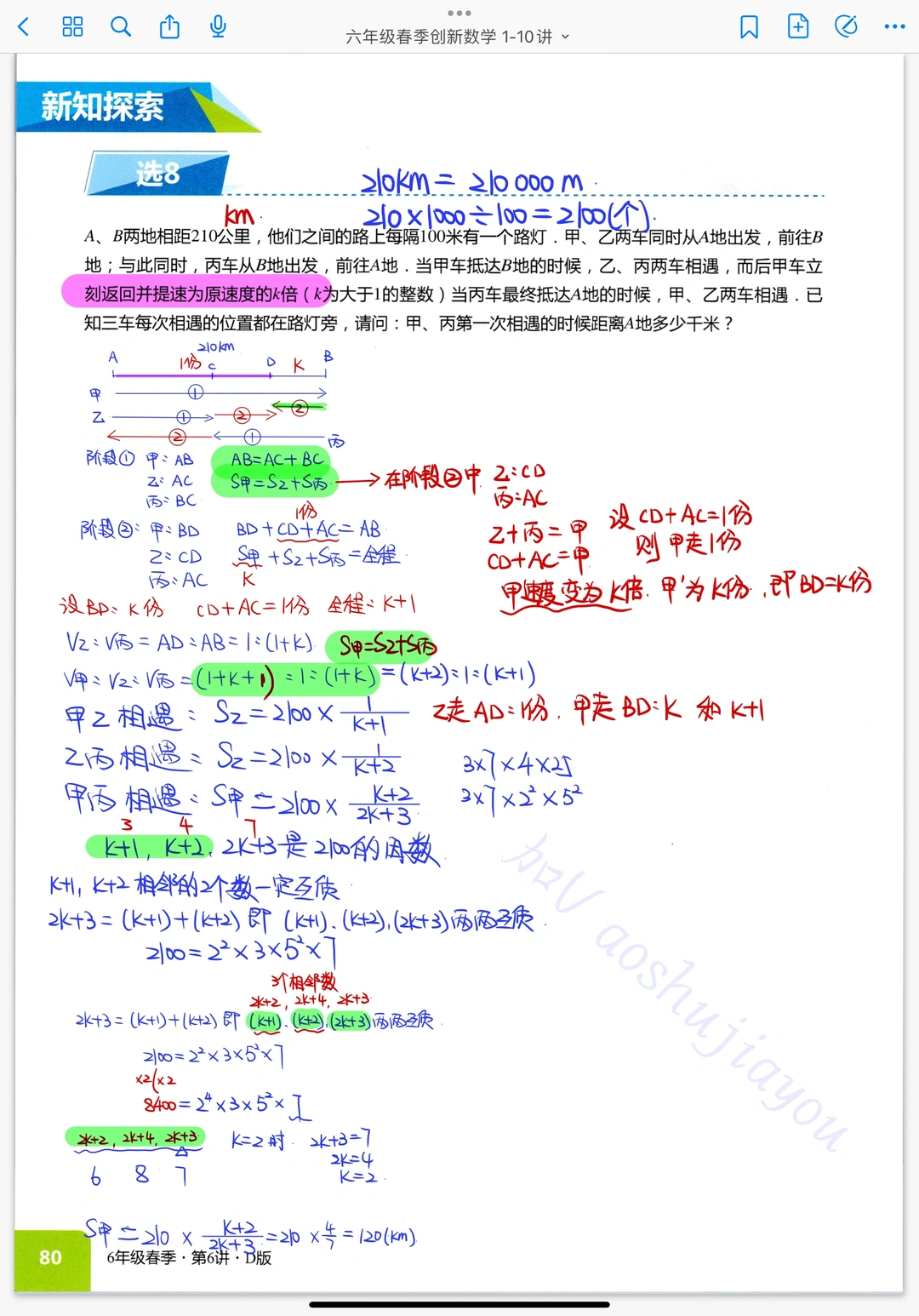 《行程综合》六年级春季创新课堂笔记