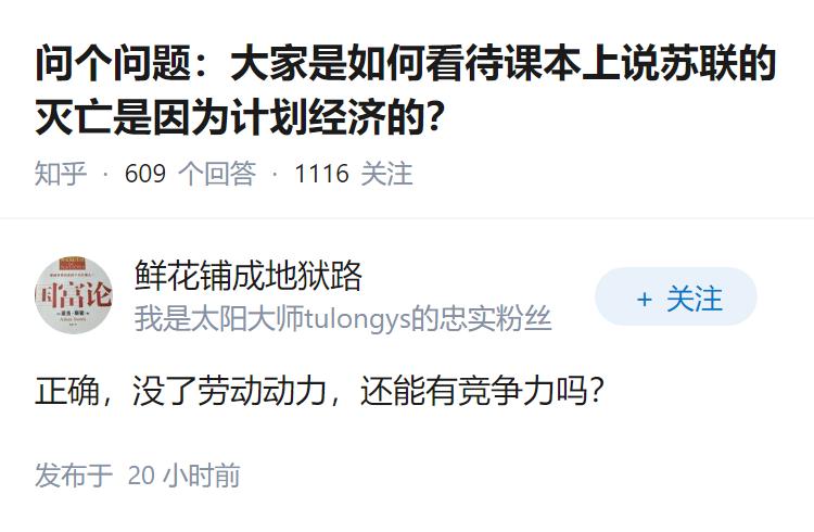 问个问题:大家是如何看待课本上说苏联的灭亡是因为计划经济的?
