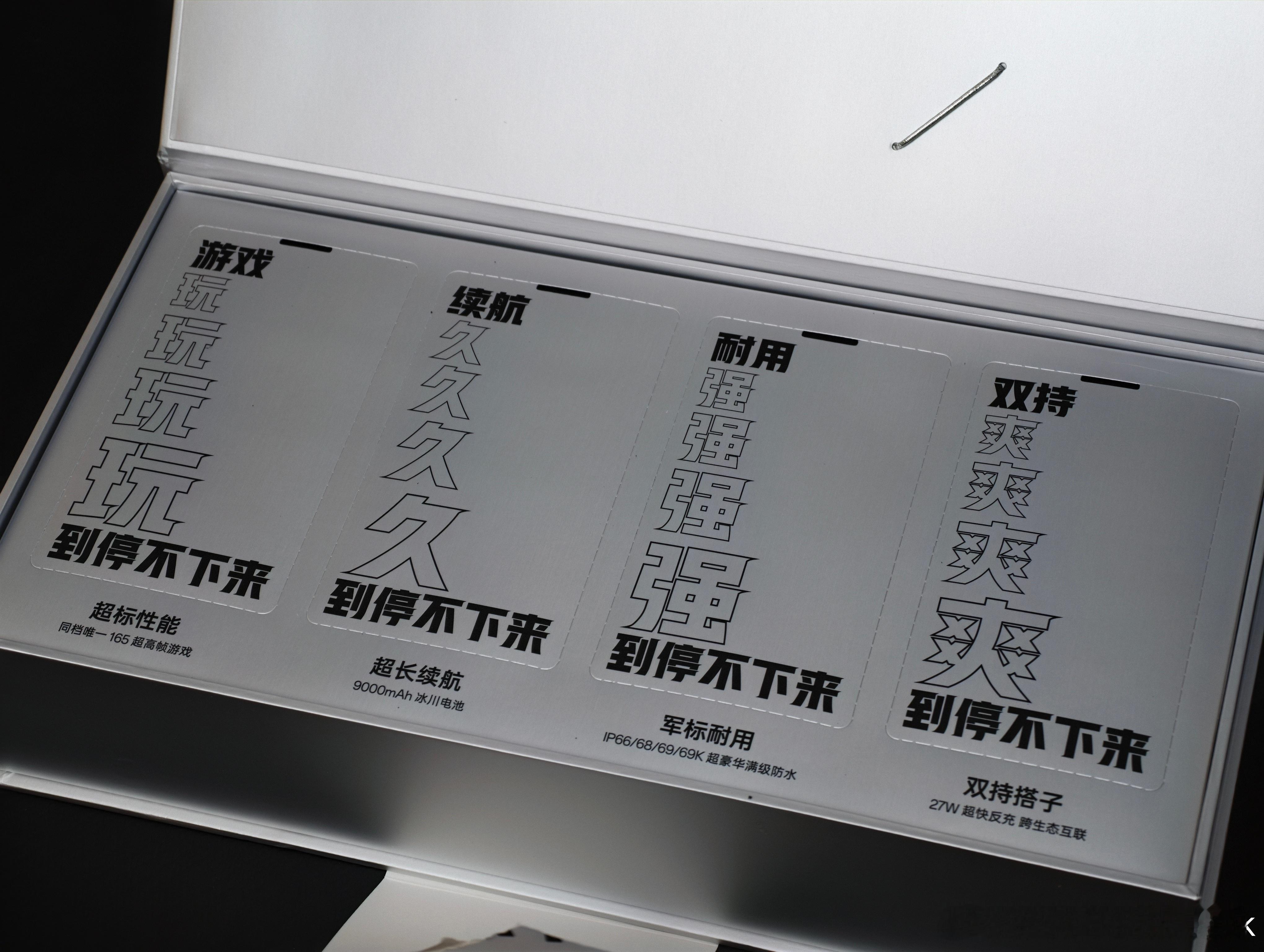 一加Turbo6邀请函挺实用的,给了四盒炫迈,平时开车和写东西的时候可以用来提神“机圈炫迈,久到离谱”续航这次也是够猛的主要的卖点也出炉了:165Hz高刷、9000mAh冰川电池、IP66/68/69/69K满级防水、27W超快反充