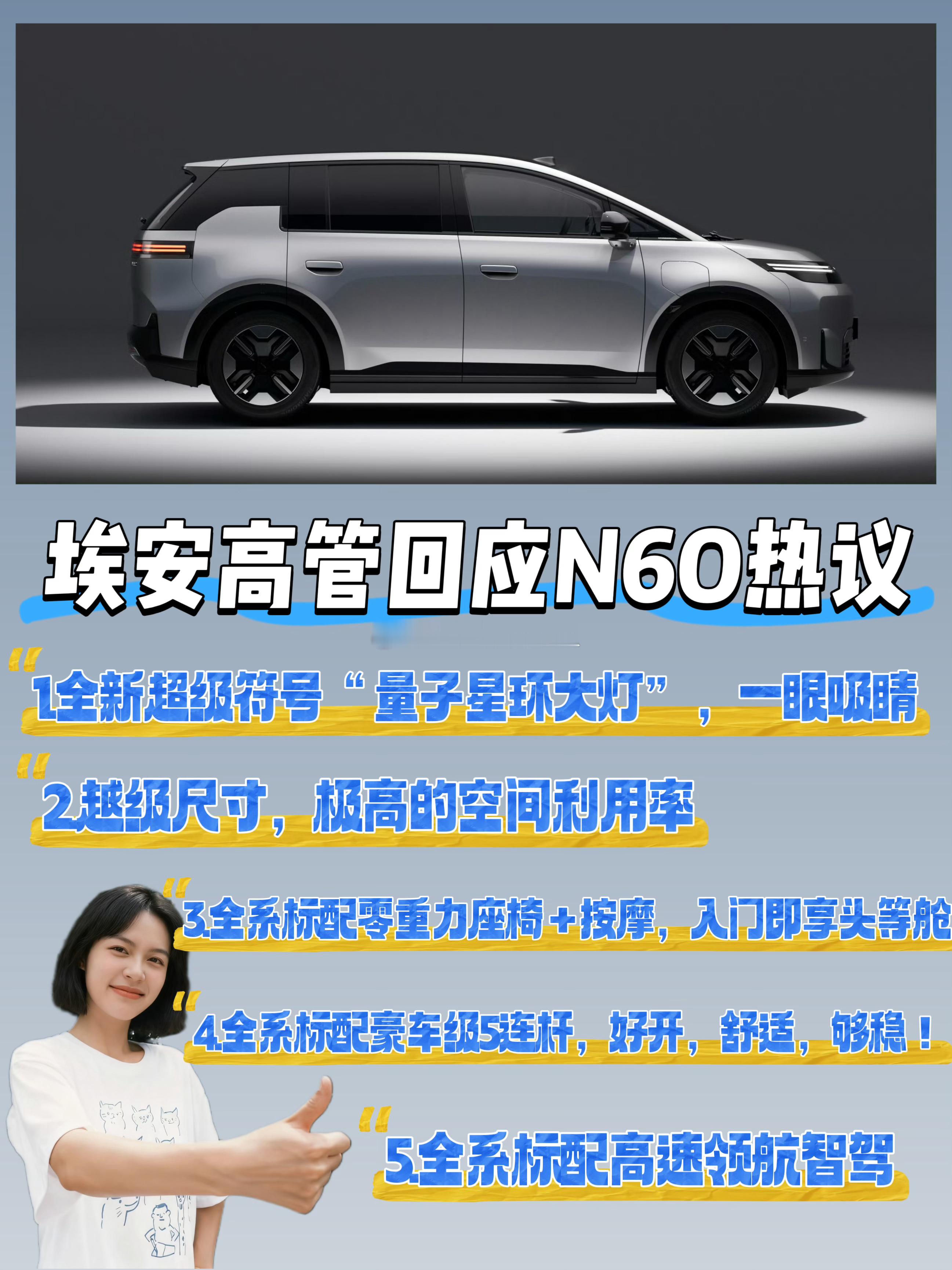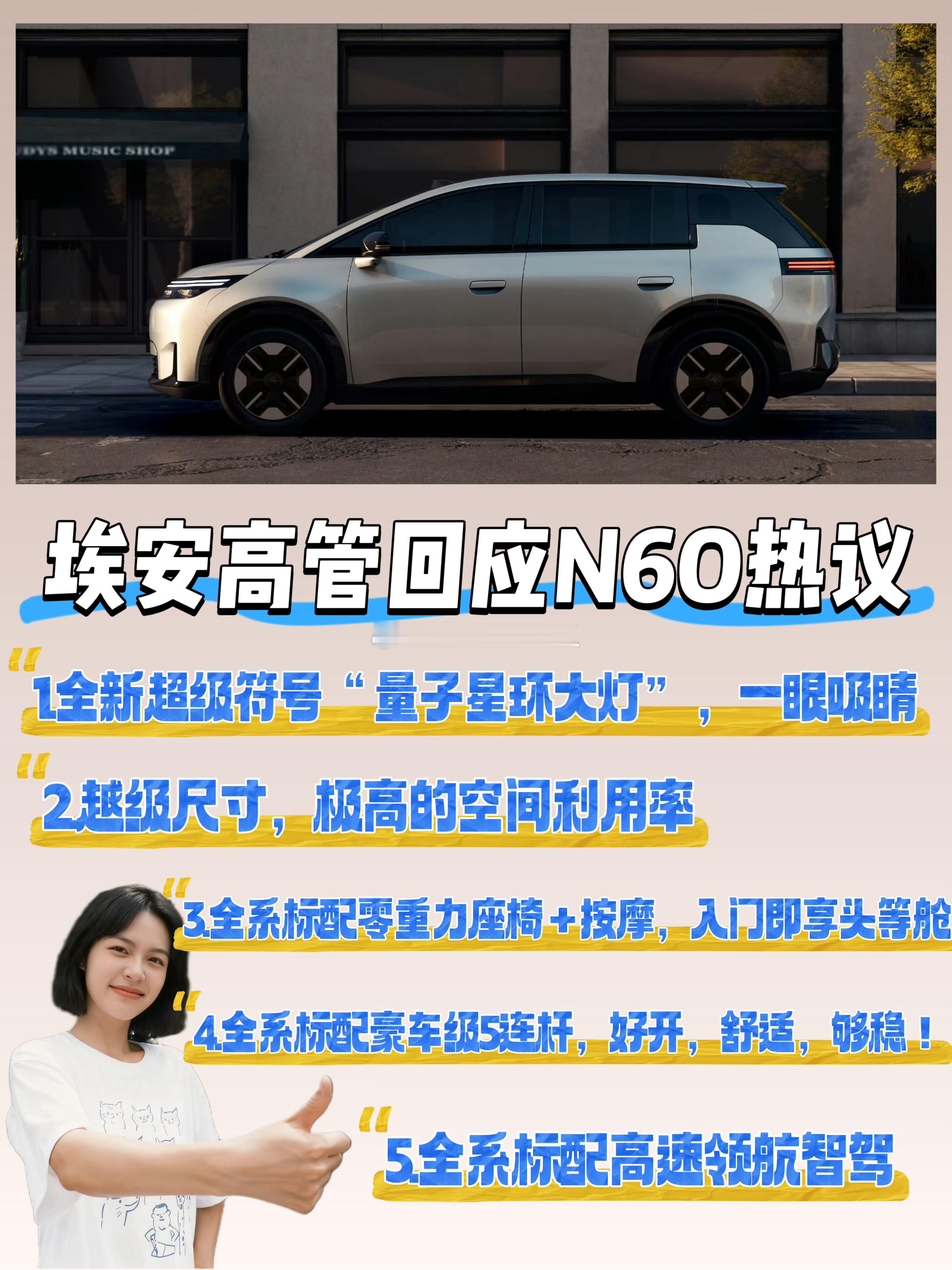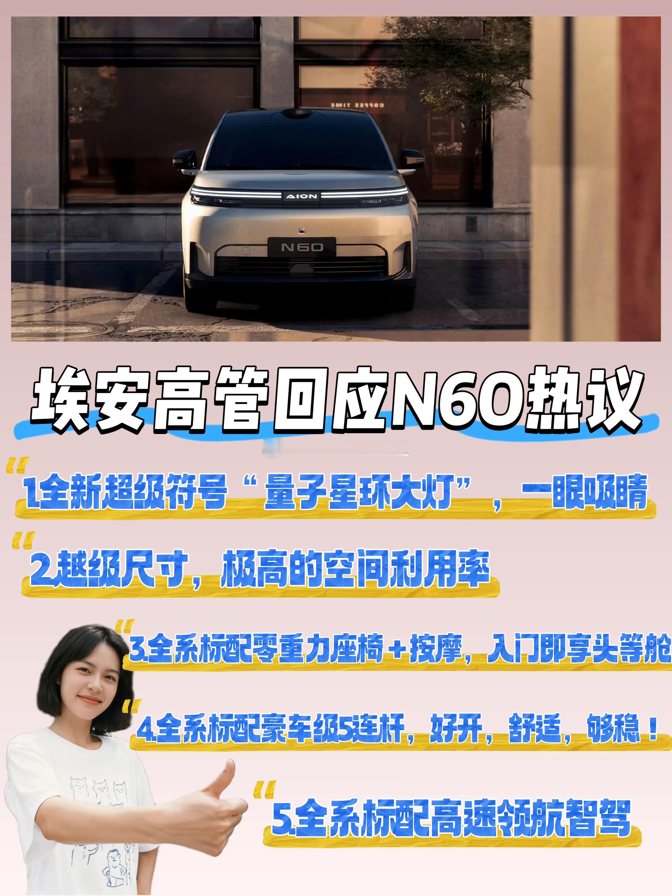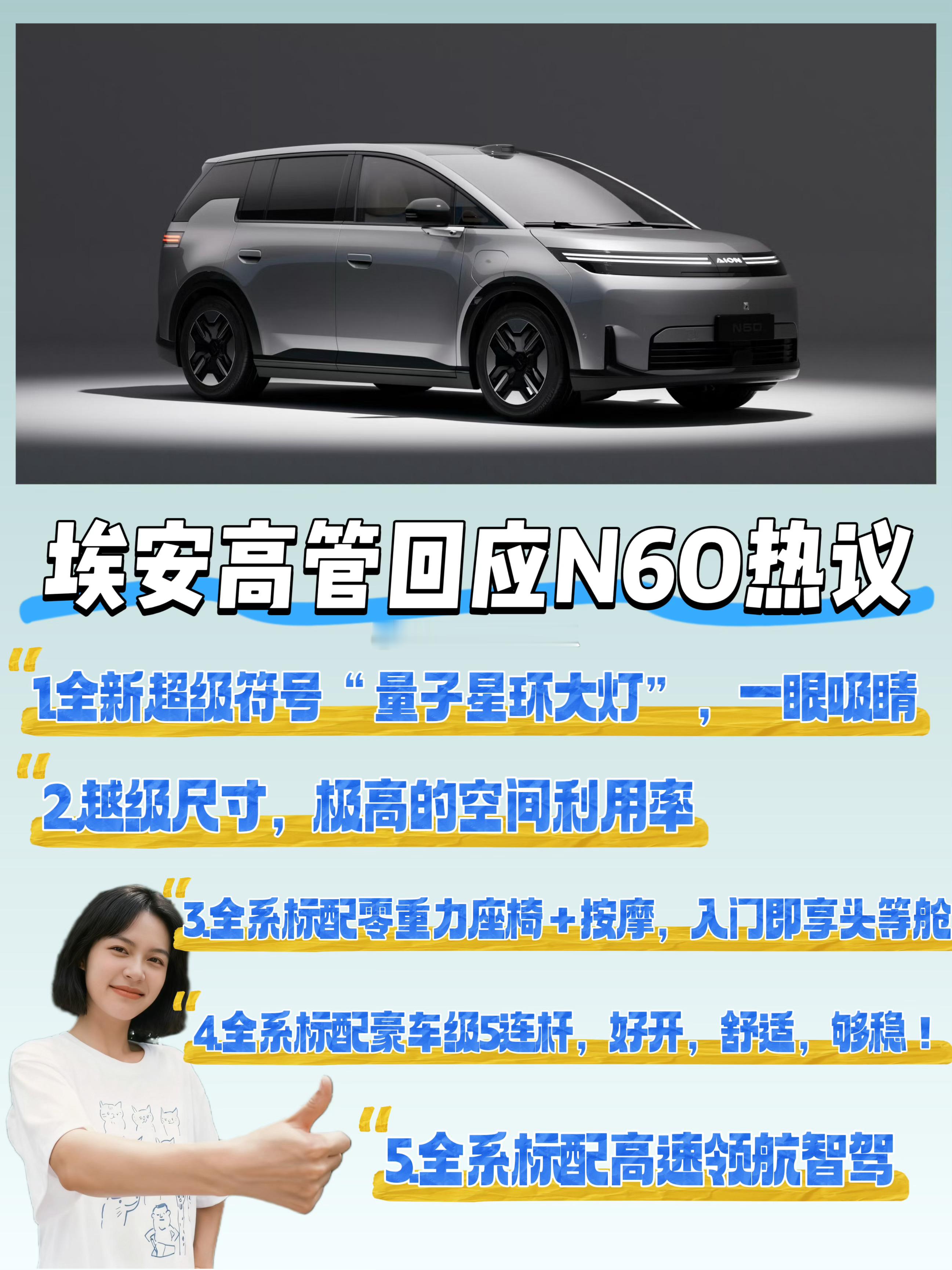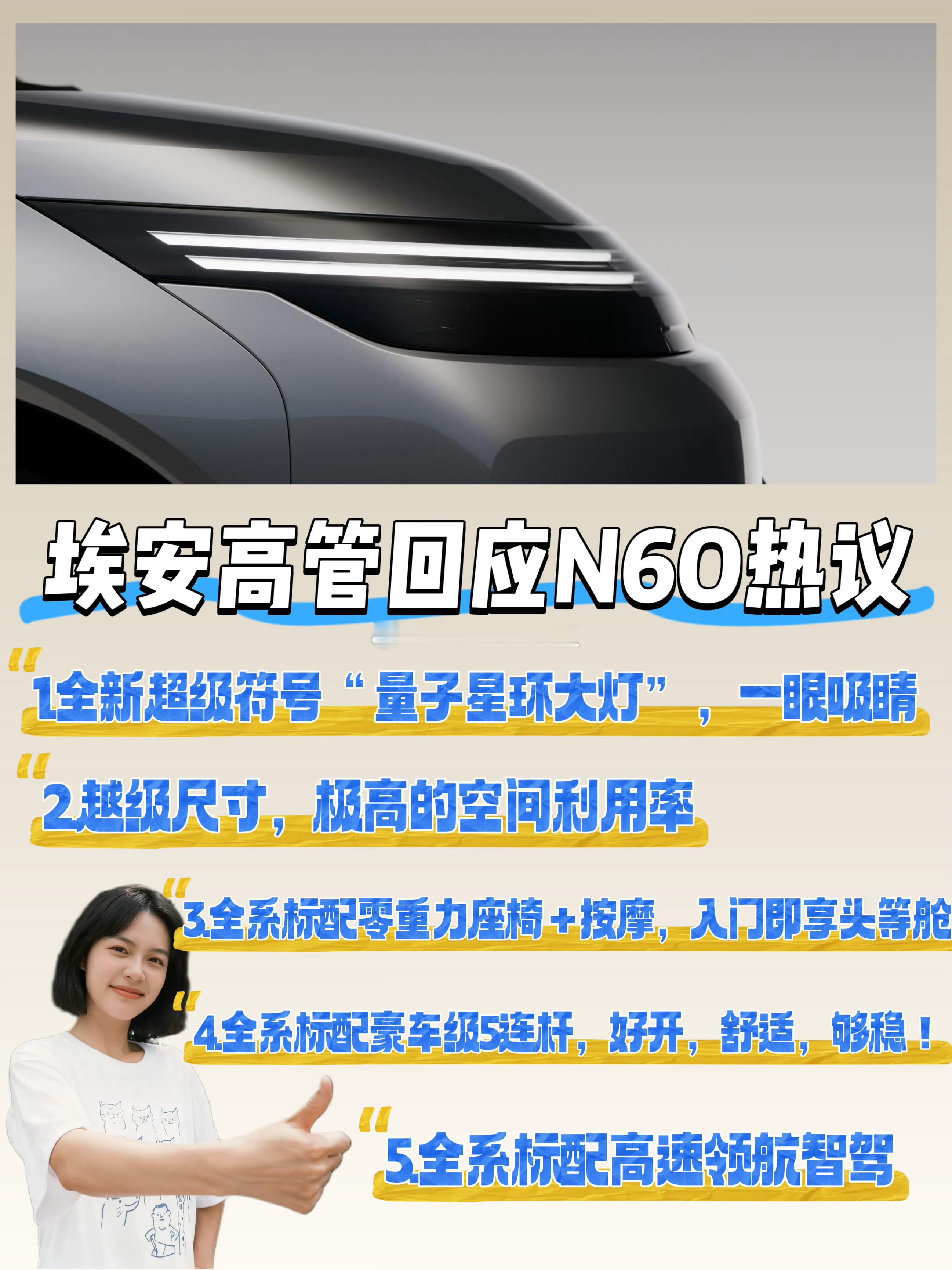 埃安高管回应N60热议 关于埃安N60到底是什么车这个问题,工程师我的观点非常明确:它根本不想被定义,它是一款刻意打破传统分类的「跨界新物种」 🤔🚘。官方称其为「纯电动多用途乘用车」,这八个字本身就意味深长——「多用途」才是它的内核,至于形式,则融合了SUV的通过性、MPV的空间感和两厢车的灵动感,最终呈现出一个独特而和谐的整体✨。埃安N60一露面,就引发了“轻旅车”、“两厢轿车”、“SUV”还是“MPV”的争论。这恰恰是它最成功的设计策略!它从诞生起,就没打算让人一眼归入某个熟悉的抽屉📂。✅形态融合术 🧬它拥有类似SUV的较高离地间隙,确保良好的通过性;但1.67米的车高又比传统SUV低趴,风阻更优,姿态更像一辆运动轿车。然而,它方正的车尾和极高的空间利用率,思路又源自MPV。这种“混血”设计,目的是同时获得多种车型的优势。✅空间魔术师 📦2775mm的超长轴距几乎全部贡献给了车内空间。它不追求不切实际的7座,而是专注于打造一个“大五座”的奢侈空间。纯平地板和可灵活变化的座椅布局,让它在露营🏕️、骑行🚴、搬家等多元场景下都能大显身手。如果说形态是表,那么“全系标配”的三大核心体验,才是N60颠覆市场的里子。它没有用低配车拉低门槛,而是让核心价值体验“入门即满配”🎁。✅舒适无阶梯全系零重力座椅+按摩 🛋️💆通常这只是顶配车的专属,但N60让它成为标配。这意味着无论选择哪个版本,你都能在堵车或长途驾驶时,一键享受近乎零压力的舒展坐姿和身体放松。这不仅仅是配置,更是一种“舒适平权”的态度。✅驾控无妥协全系豪车级5连杆后悬 🏎️🔧在同价位车型普遍使用结构简单的扭力梁悬架时,N60全系搭载了成本更高、能提供更佳滤震性和操控稳定性的五连杆独立悬架。这说明它从骨子里追求“好开”和“稳”,让舒适驾乘成为基础品质。✅智能起点高全系高速领航智驾 🛣️🤖在智能驾驶成为核心竞争力的时代,N60让高速领航成为每个人的起点。这不仅是功能的标配,更是思维的升级——它默认你的长途出行应该更轻松、更安全。我的理解 💡无论渊源如何,N60凭借全新的“量子星环”设计语言、越级的标配策略以及对形态的大胆突破,已经明确宣告了其独立的产品人格。它不再是谁的下一代,它就是自己的第一代。看到N60的外观,我脑海中立刻浮现出一个画面:它不只是一台车,更是一个能陪伴我探索生活多种可能的“伙伴” 🤝。✅工作日,它是我的“减压移动客厅” 🏙️🚗想象一下,结束一天疲惫的工作,坐进带按摩功能的零重力座椅,在回家的拥堵路上,身体却能获得放松。它的静谧座舱就像一道屏障,将喧嚣暂时隔开,让我在到家前完成情绪上的过渡。✅周末,它是我的“灵感补给站” 🌲📦我爱好摄影📸,经常说走就走。N60低趴的车身让我轻松装入三脚架、灯光箱等设备,纯电平台带来的平坦后舱,甚至能让我直接坐在车尾整理素材。较高的坐姿和宽阔视野,在寻找机位时也能给我带来更多灵感。✅小长假,它是家人的“安心旅行舱” 👨👩👧👦❤️带上父母和孩子短途旅行,家人最看重坐得是否舒服、颠簸是否轻微。N60的五连杆悬架和全员头等舱座椅,能确保全家人都拥有舒心的旅程。可靠的高速领航功能,能让我这个司机也偶尔解放双手,参与家人的聊天与欢笑。所以,埃安N60到底是什么?我认为,它是一份面向新时代用户的“全场景体验提案” 📄。它用跨界的形态,聪明地解决了城市家庭“一车多用”的切实痛点。它用毫不妥协的全系标配,真诚地回应了消费者对“配置博弈”的厌倦。它的出现,可能让习惯传统分类的人感到困惑,但这正是其颠覆性所在——它不是为了挤进某个现有赛道,而是为了开创一条属于自己的新路 🛣️。如果它的最终定价能像它的理念一样充满吸引力,那么N60绝对有潜力成为2026年车市中最特立独行而又备受喜爱的一款车。我已经迫不及待想在实际生活中体验这款“多用途伙伴”了!🎉