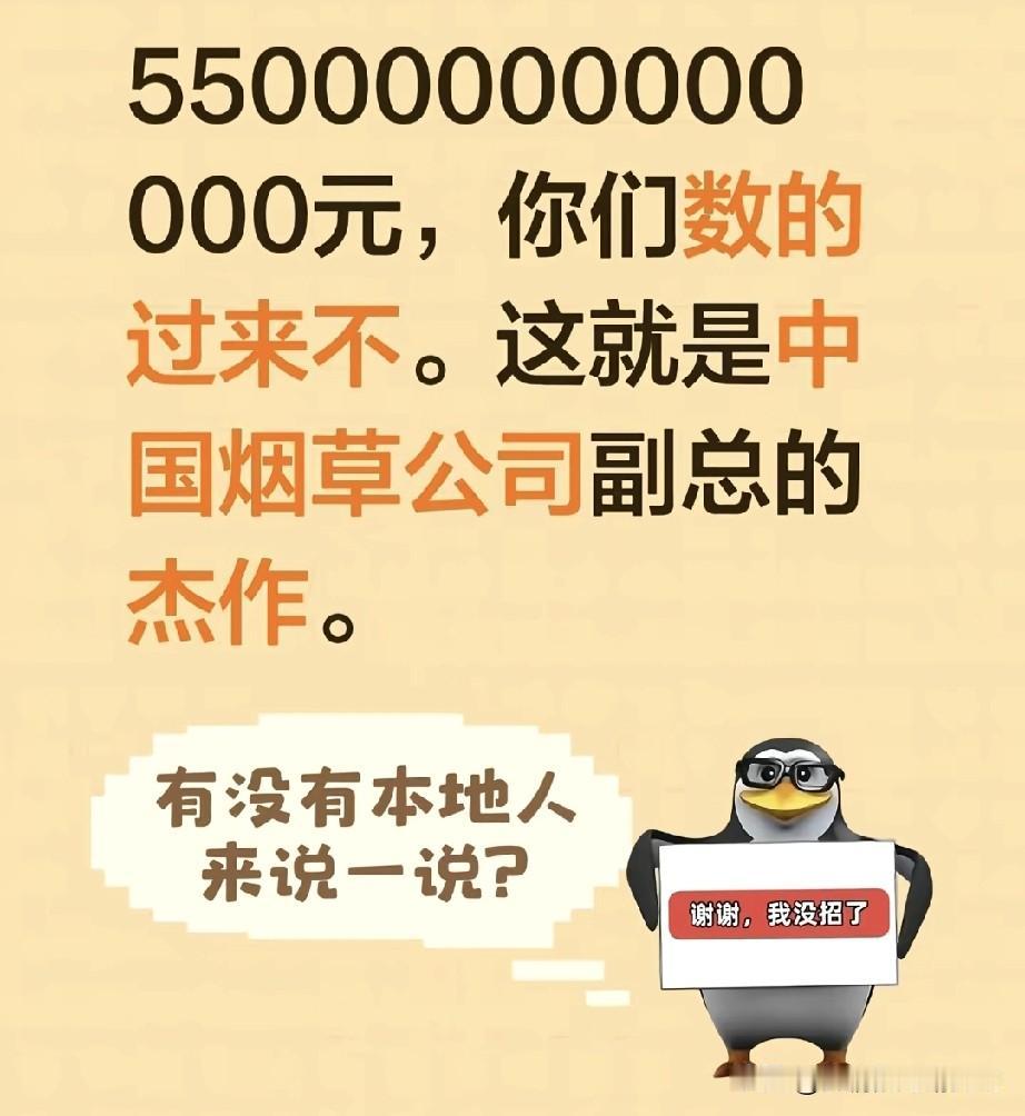 惊呆了,烟草公司副总贪污50万亿?烟草的利润是有多大才有这么大金额能被贪污?怀着怀疑的态度,看了一下各省市的预计2025年GDP,最高的也才5万亿。所以我感觉这个副总贪污50万亿是不可能的。希望大家不要被网上的舆论带偏了,这完全是不可能的。
