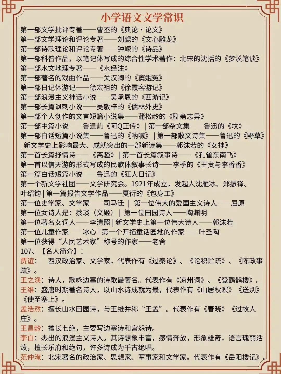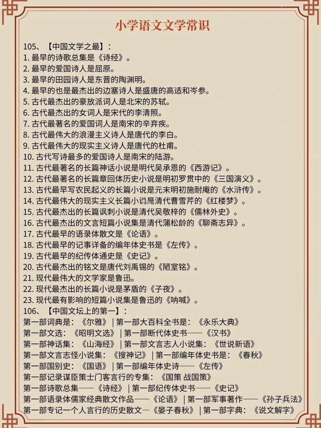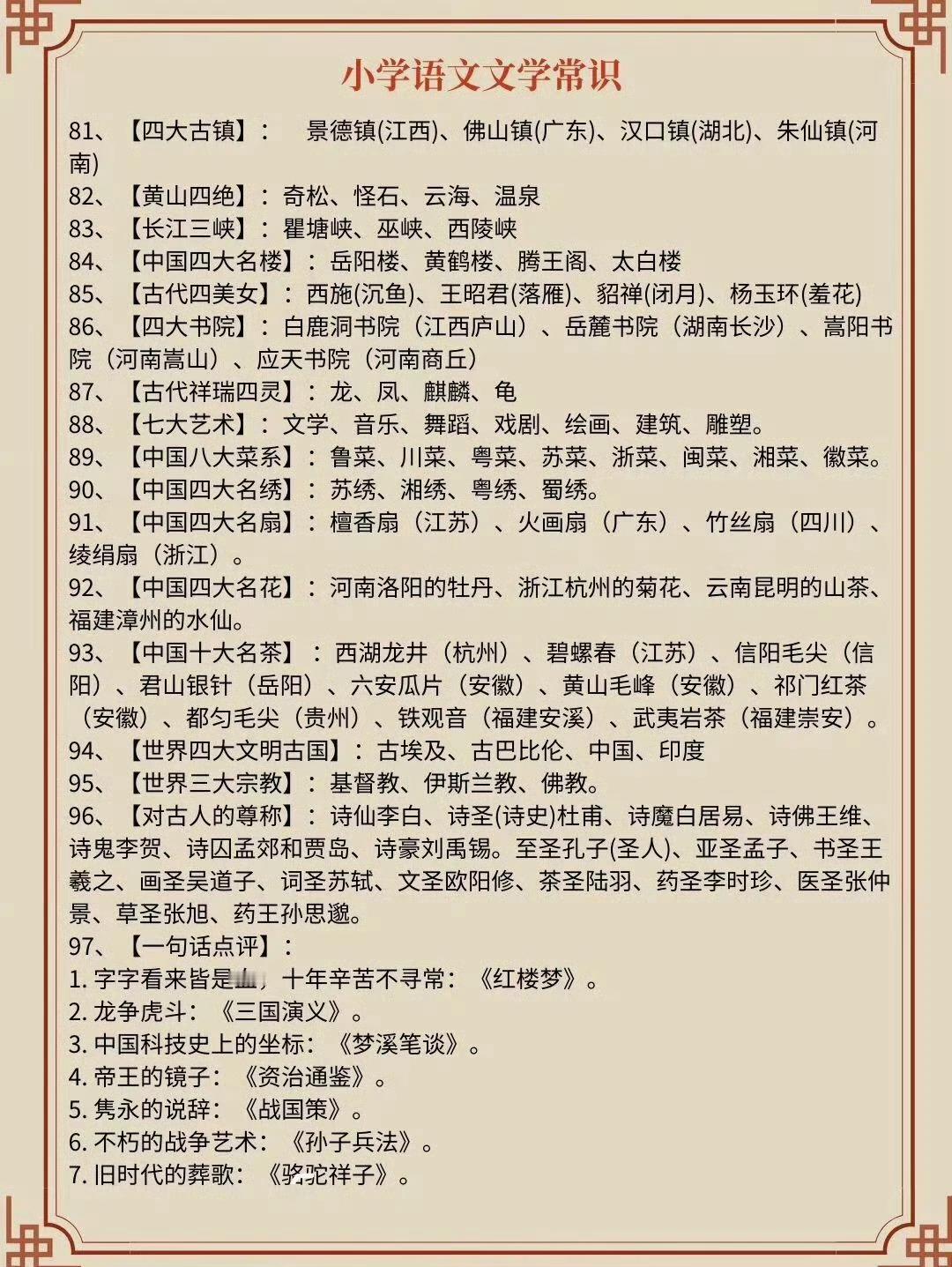 学霸都滚瓜烂熟的中国文学常识…