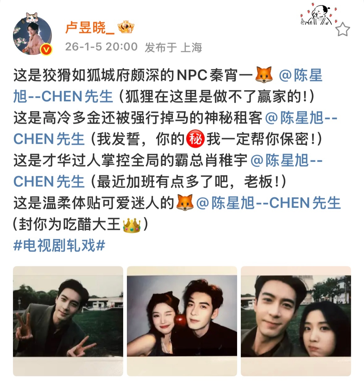 开吃我们轧戏的第一顿饭陈星旭卢昱晓拍立得合照 轧戏定档0109