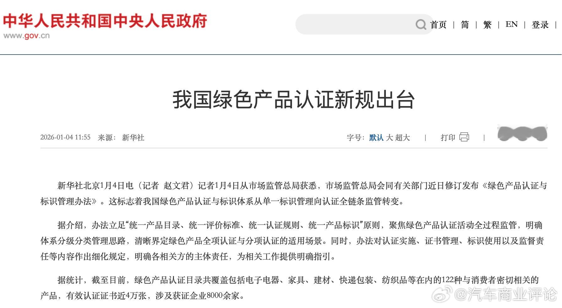 首次对轮胎等绿色产品认证作出全面统一规范 1月4日,市场监管总局等九部门修订发布《绿色产品认证与标识管理办法》。这是我国首次对绿色产品认证活动系统性作出全面、统一规范。其中立足“统一产品目录、统一评价标准、统一认证规则、统一产品标识”原则,清晰界定绿色产品全项认证与分项认证的适用场景。截至目前,绿色产品认证目录共覆盖包括轮胎、涂料、防水密封及隔热材料等122种与消费者密切相关的产品,有效认证证书已近4万张。
