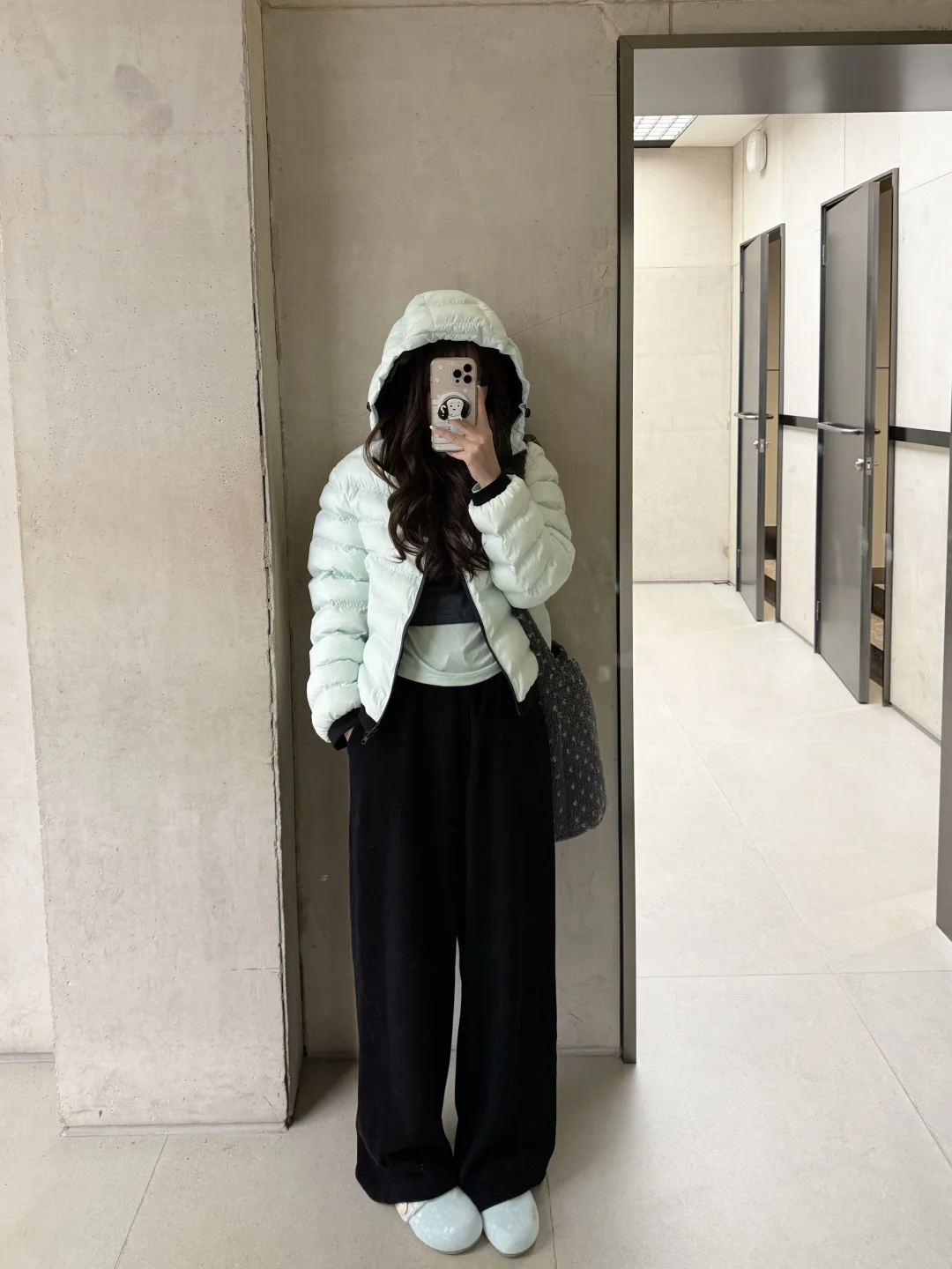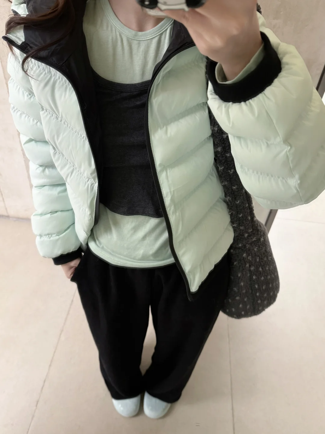 黑色羽绒服➕灰色雪地靴🐈⬛古早感look✖️2