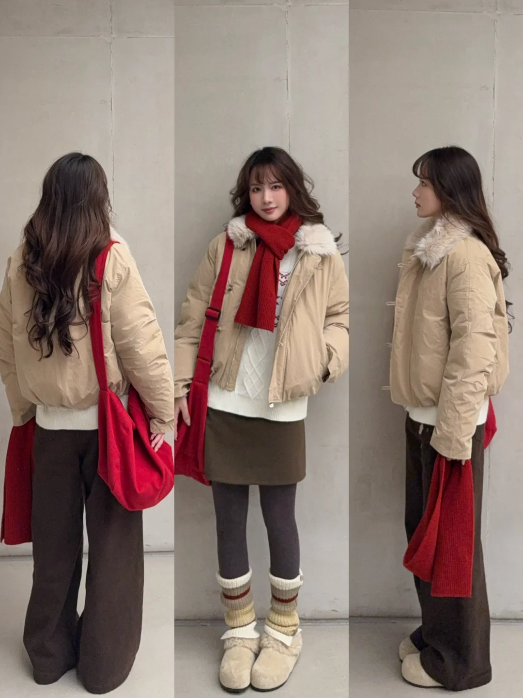 红色的羽绒服是没有 红色系的穿搭可以偶尔来点