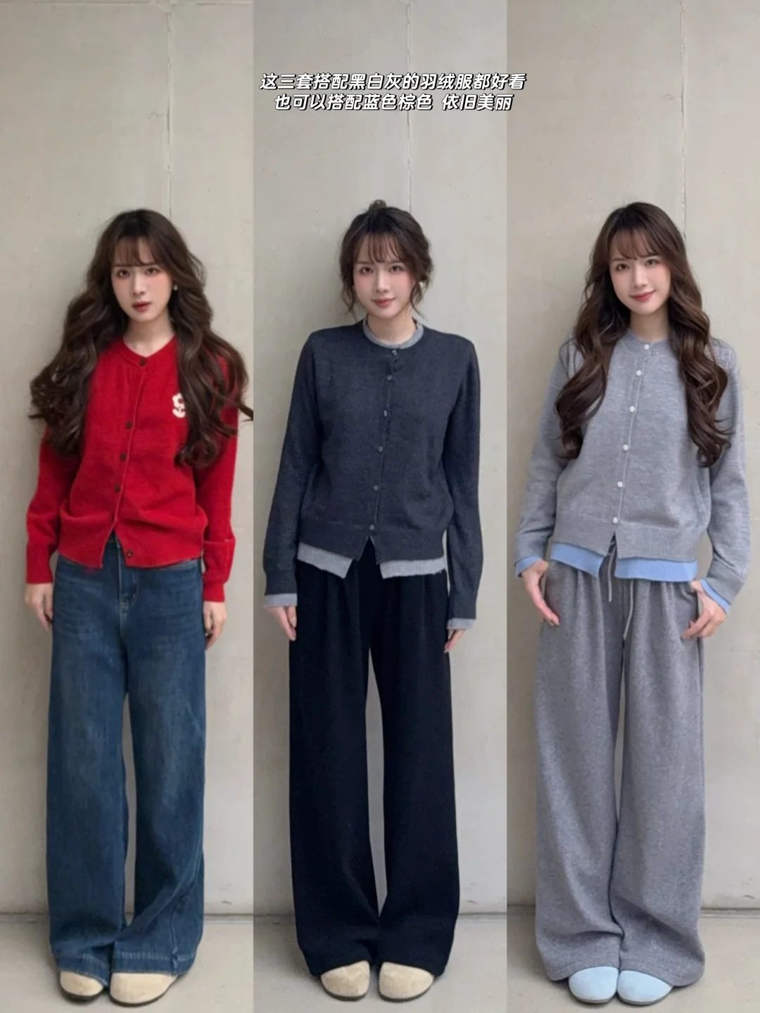 (除此之外 这几身内搭搭配黑色灰色羽绒服也可以 甚至也可以用来搭配大衣~)