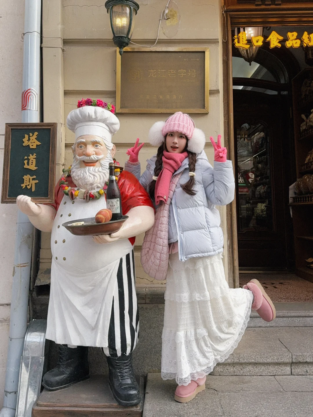 168/104左右 溜溜达达来中央大街了🥰 我记得前几年来的时候这个老爷爷也没人拍照啊 这次去大排场龙 (来都来了哈哈哈必须拍啊) 该说不说挺出片的! 以前在哈尔滨读书的时候圣诞节就爱去中央大街 白天好看晚上亮灯了也好看 当天哈尔滨气温零下十四度左右 里面穿的是2000d的打底裤➕加绒半裙 不冷 很感谢冰子 我去的那几天升温了哈哈哈 基本上没冻着🫰🏻🫰🏻🫰🏻 📝拍照地点 📍塔道斯西餐厅(附近有两个老爷爷都可以拍) 📍日富一日咖啡厅(哈工大附近)