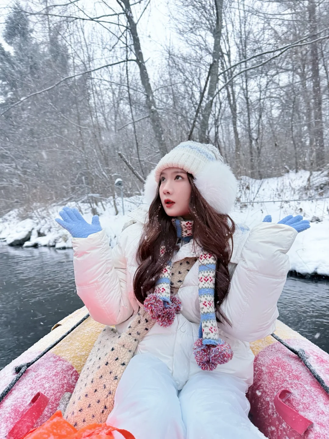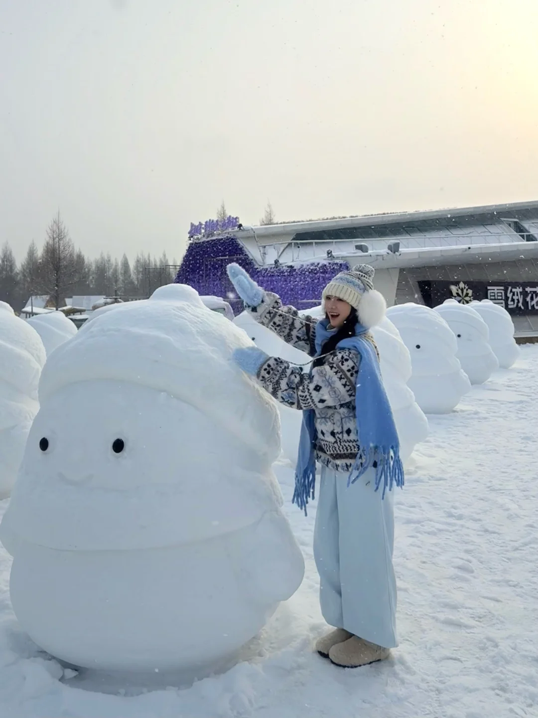 168/104左右 很幸运!离开长白山那天早上 二道白河镇下了超大的雪! 一大早五点起来漂流 累但是看到雾凇还是很开心~ 很推荐大家去雪绒花公园逛逛拍拍照 还可以喂小鹿(不过要收费) 尤其是下雪 整个公园特别美 白雪皑皑银装素裹 公园里还有很多排排站的大肚子小雪人哈哈 特别萌啊!!!很难控制住自己🥹