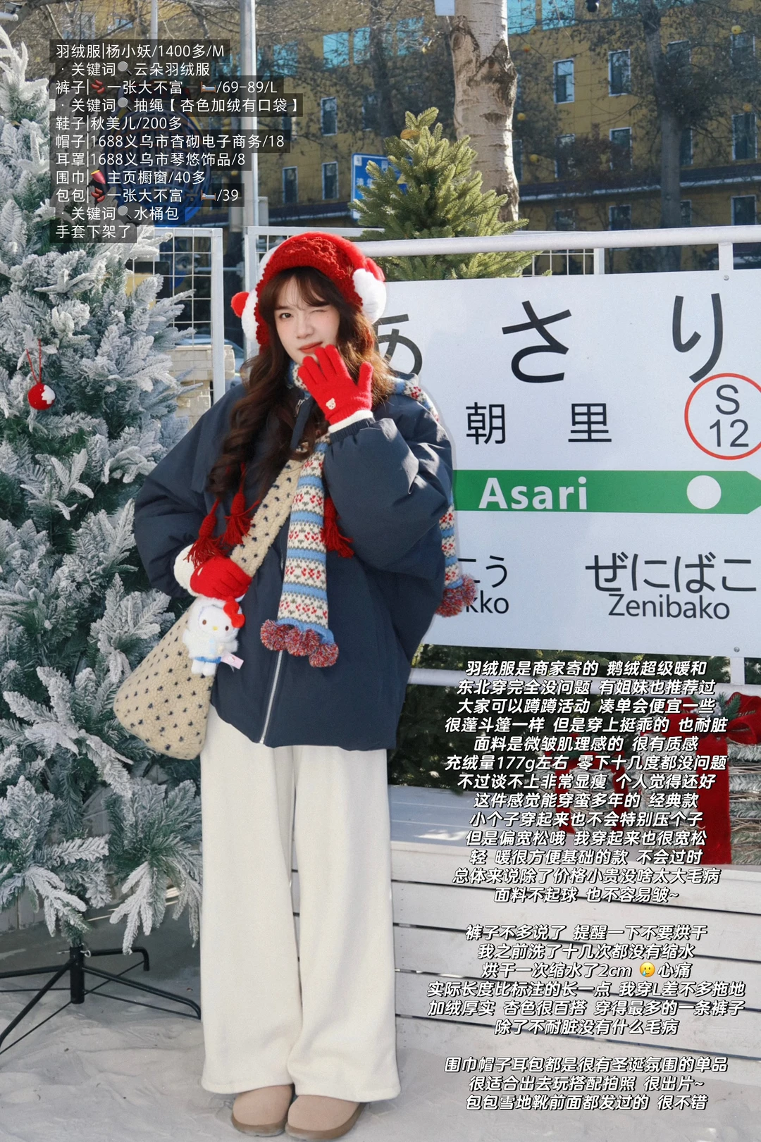 168/104 【穿搭仅供参考 理性种草~】 长春day2去了桂林路 特别好逛~ 这个咖啡店太好拍了🥹 现在是限定北海道雪景风格~ 📍kokono小九家 真·北海道【长春版本】 预制了一波圣诞照片哈哈哈 这套真的很暖和 鹅绒羽绒服确实轻薄又暖 拆解一下这套穿搭 也挺适合圣诞穿的~ 上半身穿了高领打底衫➕毛衣➕鹅绒羽绒服 下半身穿了1800d打底裤➕加绒外裤 手套围巾耳罩都备上 当天零下十五度左右依旧挺暖和~