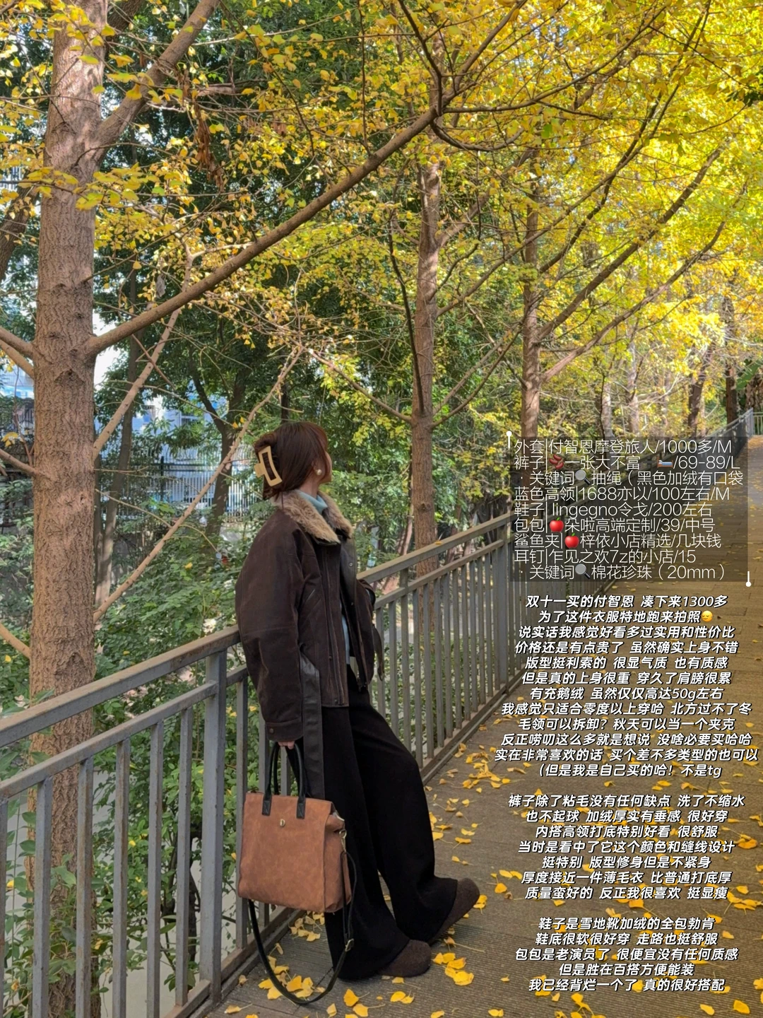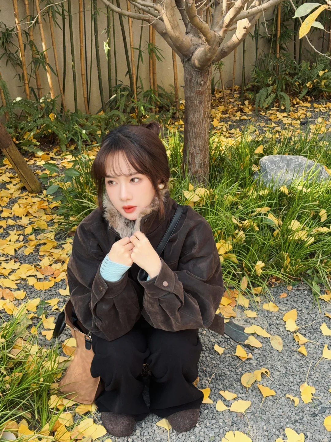 168/104左右 付智恩这件也算是没白买哈哈 一咬牙一跺脚🙂↔️ 权威是很权威的 年纪大一点比较迷恋这种风格 气质姐感 很有内味儿 除了价格不美丽 咖啡色和秋冬的景色还蛮搭的~ 抓住成都秋天的小尾巴 终于拍到了银杏叶 这几天天气都很不错 阳光一晒人暖暖的~ 💭拍照地点 📍成都 玉林路附近(目测现在人很少) 【🚇芳草街 B出口 左手边小巷子走进去50m左右】 但是估计12月中旬左右叶子要掉差不多了 滤镜:⭐图-秋杏30%叠加特效胶片噪点各项30% 光感-15 局部饱和度根据画面调整