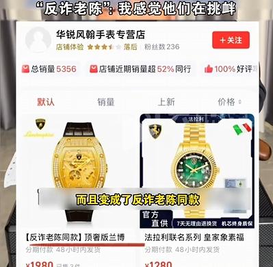 最近,“反诈老陈”又出手了。他在直播间花1980元下单了一块号称“兰博基尼联名999足金手表”,还收到一份所谓“鉴定证书”。可他查了才发现,兰博基尼品牌根本没和这些手表合作过,也就是说,这些手表全是蹭名牌。网上同款手表价格从999元到60万元不等,但兰博基尼公司官方明确否认有授权。 更离谱的是,鉴定证书上的检测机构“中鑫检珠宝检测中心”也查无此处。老陈曝光后,商家不仅没下架,反而把手表打上了“反诈老陈同款”做噱头。深感愤怒的老陈直接点名深圳华锐兰博公司涉假。 1月5日,深圳市市场监督管理局迅速介入调查,发现涉事企业登记地址竟是一间出租屋,现场并没有公司存在。目前该网店已被关停,相关手表也被扣押,还要进一步调查与华锐兰博公司的关系。这种明目张胆的“割韭菜”,监管不能手软,必须查到底!