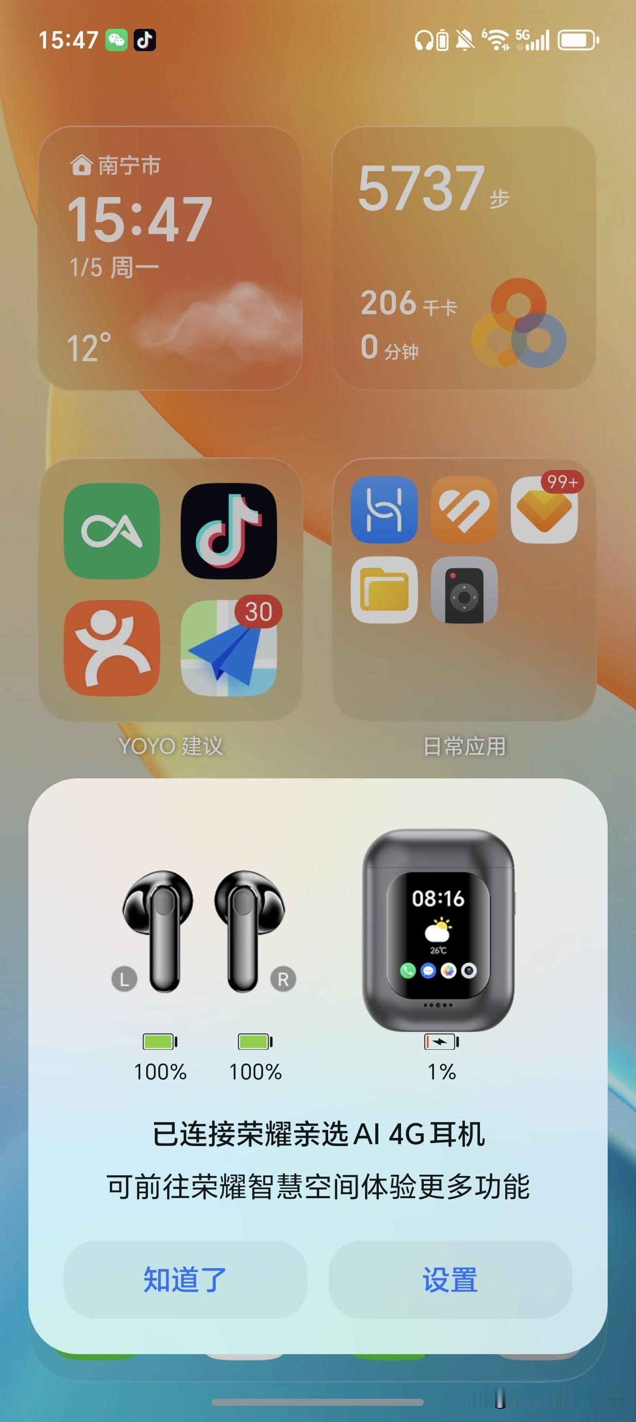 AI通话耳机,太长下面简称荣耀亲选AI通话耳机,这个设备其实有点魔幻,你说是耳机吧,对,但不全,它还支持触控、拍照、AI语音聊天,甚至插卡打电话、微信聊天,妥妥的一台手机,那么问题来了,它的应用场景在哪里呢? 其实对于现在的人来说,出门不带钱包、不带钥匙都已经是常态,但是不带手机,似乎很少人有人做到。但如果是日常就在小区散个步,但比如你就是偶尔的下个楼在小区散步、遛娃不带手机又不想错过重要的联系,荣耀亲选AI通话耳机的使用场景就出来了。 首先它支持插卡通话(已经实测联通、移动都OK,电信因为没卡没试),其次是虽然看起来这块屏幕挺小的,但它甚至支持触控(且并不是那种粗制滥造的感觉,丝滑跟触控都做得不错),不会有选择难或者动画过度慢的问题,所以是完全可以当做一台小手机来看的,甚至它还支持微信登录,重要的信息都不会错过了。 其次就是在充电仓上安装摄像头??这个我着实是没想到的,但从后面的AI体验,比如说识物、拍文案效果都还不错,而且结合耳机的使用可以实现录音转文字、翻译、内容总结等,结合耀子这几年大力在AI方面下的苦工,识别率跟成功率还是挺高的,我甚至在想如果是需要视频的时候,它是不是也可以作为一个会议摄像头参会?(这点待验证) 展开一下,如果把荣耀亲选AI通话耳机给孩子用,那么平常用这个摄像头拍书本进行英文翻译,古文释义都是可用的,这里就不得不提到它内置了DeepSeek R1以及讯飞星火大模型,这样还解决了每次孩子问问题都得找手机、电脑的尴尬,更方便。 相比传统TWS耳机,荣耀亲选AI通话耳机的尺寸是稍大一圈的,除了屏幕、摄像头之外它还要兼顾耳机的续航,单独用耳机大概能用上6个小时,加上电池仓的容量日常出行也不需要手机的参与就能实现简单的电话、听歌功能。 两枚耳机则是TWS的设计,我拿到的是亮银色,这个耳机外观就显得比较高级了,长时间佩戴没有什么不适感,再加上内置12.4mm动圈,跟一般的TWS耳机是差不多的,但连接了荣耀智慧空间的话你才能打开它的完全体,比如EQ音效调节,这里有荣耀自研的空间音频,还为游戏、音乐爱好者提供了不同的EQ预设,它甚至是目前很难得的一款支持蓝牙5.4的耳机,传输时延大幅降低,沉浸式的体验感是不错的。作为一个耳机来说是合格的(就是如果能再有主动降噪就更棒了)。 说到音乐,荣耀亲选AI通话耳机内置了16GB的存储,除去系统自带还有10GB左右的空间,软件还搭配了网易云音乐、喜马拉雅音乐等APP,日常使用足够了。 回到前面在拿到荣耀亲选AI通话耳机的时候的不解到实际使用几天下来的体验,我想说的是荣耀亲选AI通话耳机其实是想在目前的智能生活中单独开辟一种可能,如今智能手机在我们生活中的占比正在不断地增加,很多人都会想“如果我不用带着手机”但又不会错过的一种生活态度,前面忘记说了作为这样的一款智能设备,荣耀亲选AI通话耳机居然还保持了IP54的防水等级,这就让它的适用场景变得更广,但在这里必须得说的是799的价格可能很多人会觉得如此激进的产品接受程度有限,但反过来想一想,TWS耳机,AI智能体、简单的手机功能,集齐一身的它真的贵吗?大家认为呢?
