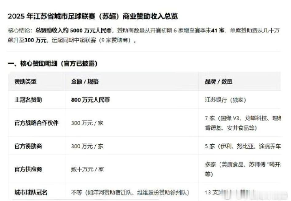 2026苏超招商总冠名从25年的800万涨到5000 苏超新赛季招商工作接近尾声,主冠名商报价达到5000万 这商业化那个项目不羡慕,其他省市也羡慕啊 太牛逼了,一年招商涨了6倍多。