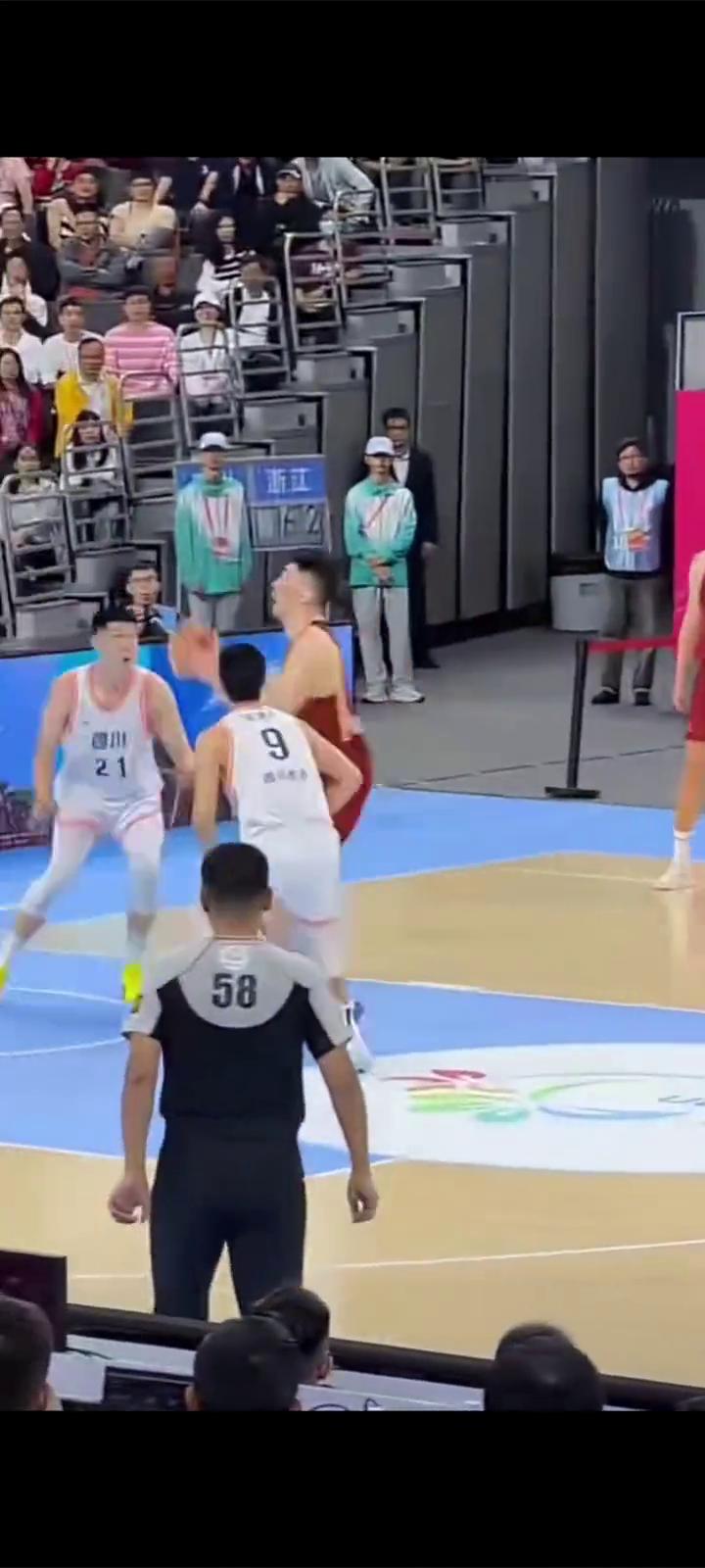 注意看前方高能,余嘉豪逆天隔扣,这球还是一个2+1。