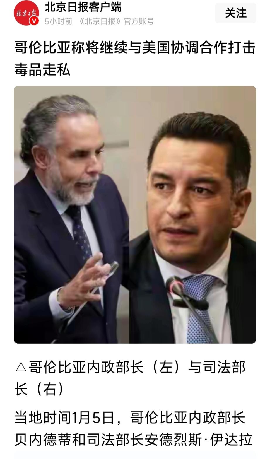 哥伦比亚与美国合作打击毒品走私。 这哥伦比亚总统昨天才喊话特朗普,放马过来。