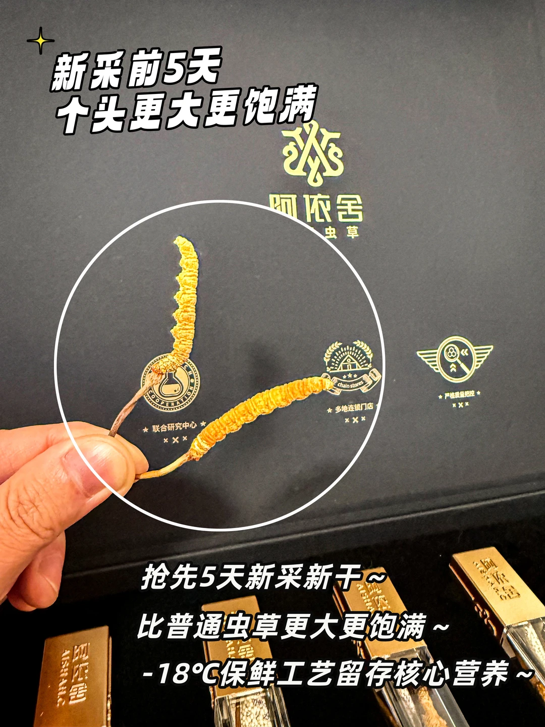 每根都是抢先5天新采的头茬虫草,采用-18℃的保鲜工艺,留存了虫草的核心营养;