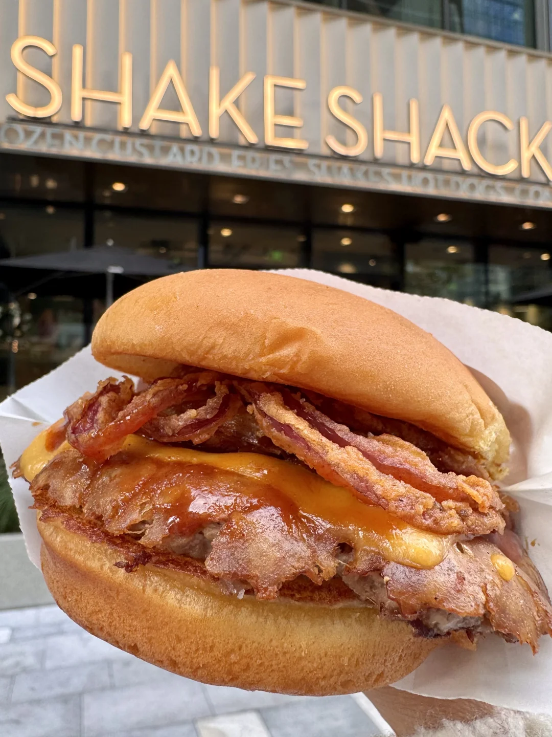 BBQ熏香猪堡!酥脆的炸洋葱+咸香芝士+三肥七瘦的猪颈肉梅花肉+ 美式烧烤酱汁!趁热吃一口下去嘎吱嘎吱巨多汁!淡淡的烟熏香味好绝😭简直是我的人生汉堡!