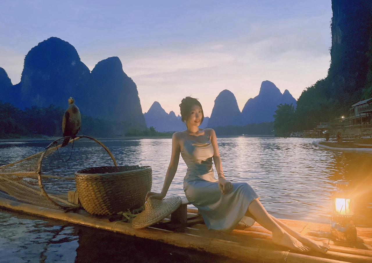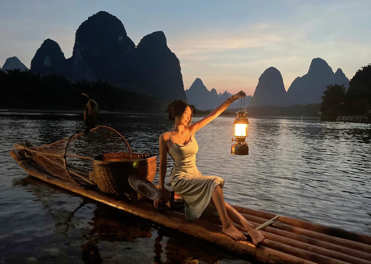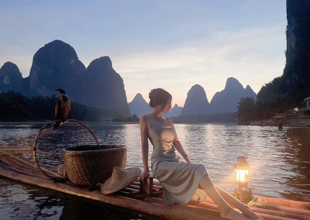 上热门 桂林山水美如画 晚霞 美女 御姐