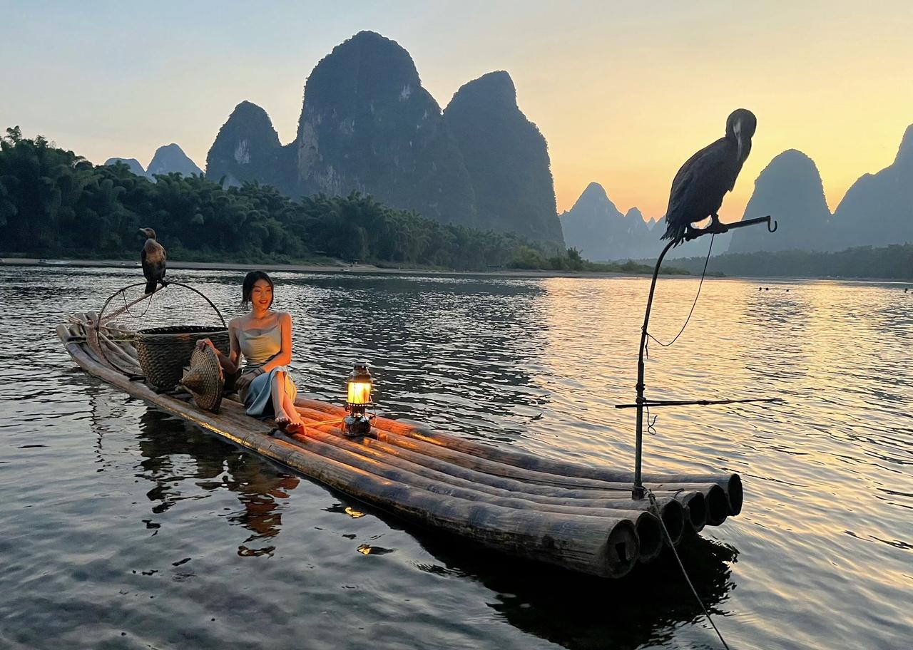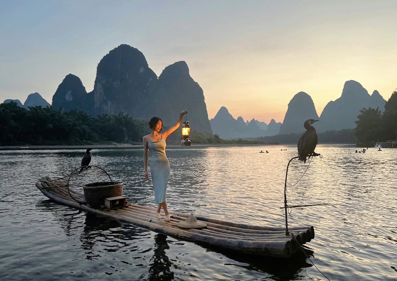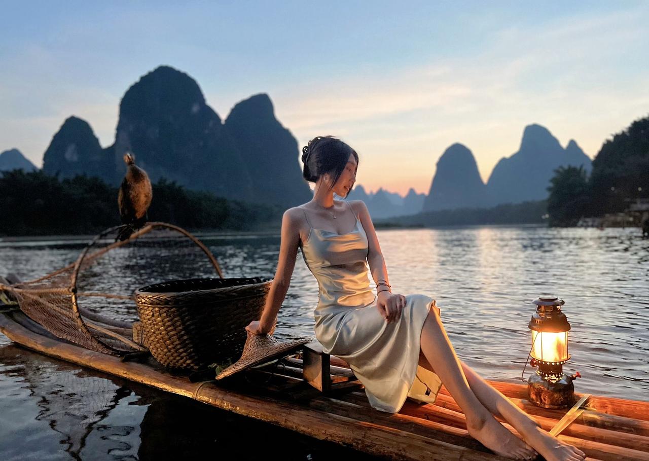 上热门 桂林山水美如画 晚霞 美女 御姐