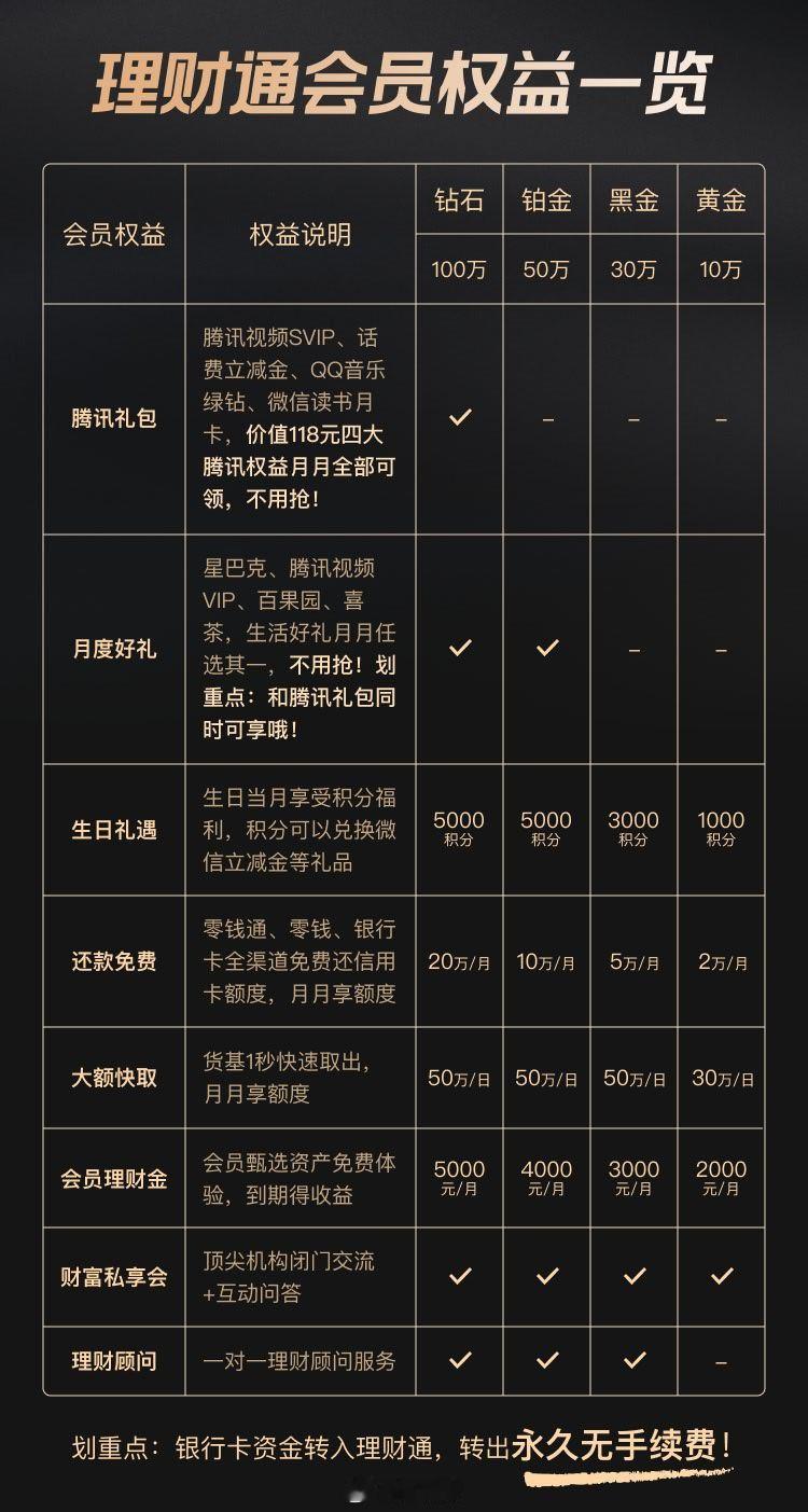 理财通这是明显要抢支付宝v1到v3的会员了,我感觉支付宝未来可能要走高净值路线了,单从福利缩水看,这是要放弃v3以下会员,争取更多300万以上的会员。不过理财通代销的基金产品并不全,支付宝有的产品,理财通没有,那就无法转托管了。当初理财通的模式是想搞成基金精品店,但这一模式遭遇了挑战,现在不知道有没有代销的基金更多一些?
