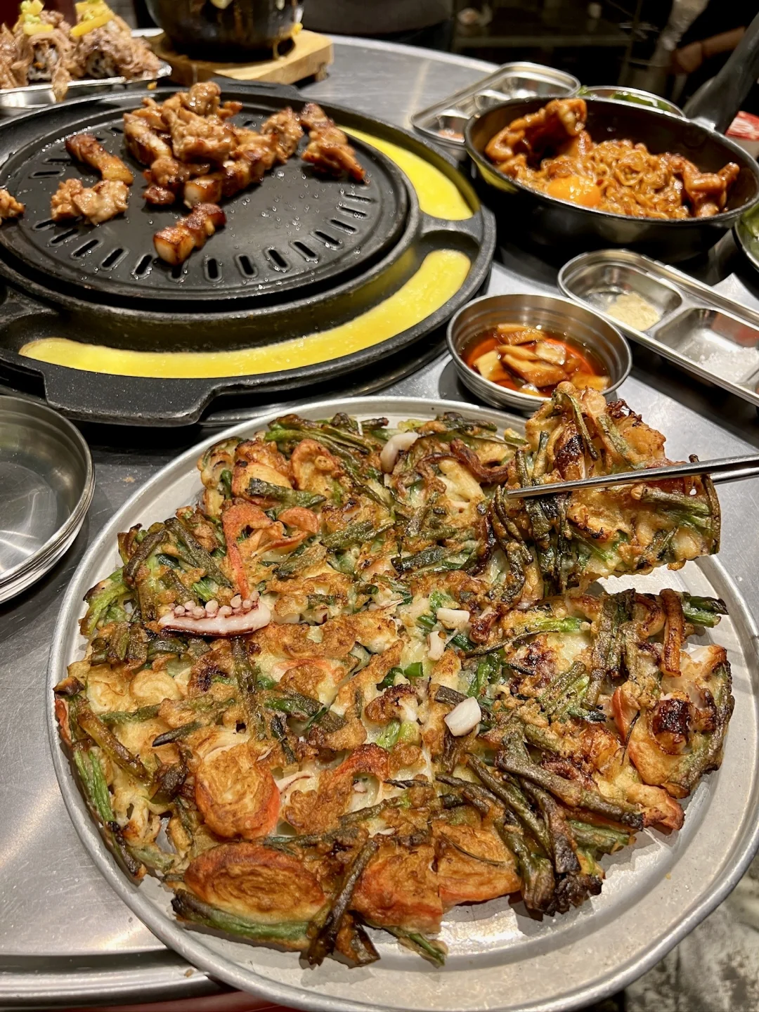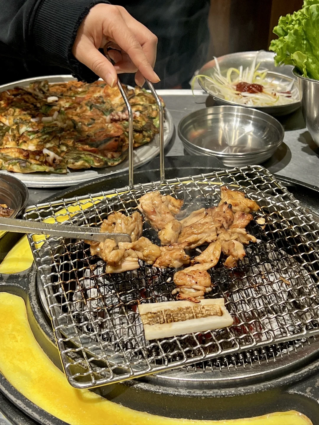 上海新开的,一秒到小韩🇰🇷 韩剧里的烤肉店!怎么拍怎么韩 肉肉🥩大块又新鲜! 五花肉厚厚的滋滋冒油! 海鲜葱饼的海鲜多的哟 进门就忍不住好吃好吃不停思密达了 我是谁我在哪我在韩国吃烤肉啊!