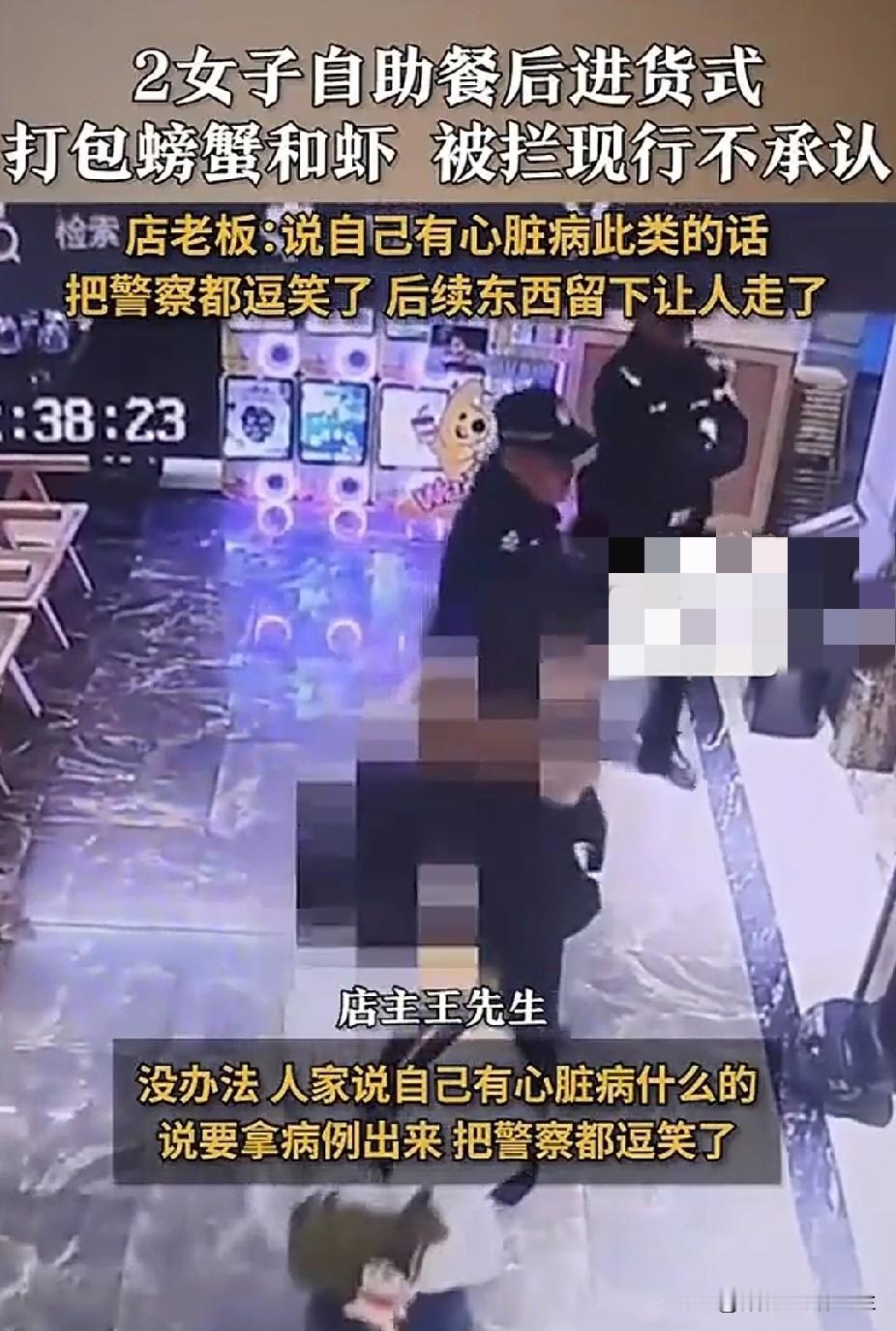 “白嫖党来了!”太原,2女子吃完自助餐打包螃蟹和虾,被抓现形后拒不承认,店主:称自己有心脏病病例,把警察都逗笑了。 天下之大,无奇不有! 这哪是来吃自助餐的?分明是跑来“进货”的,想白嫖到底,打包螃蟹和虾,这也太丢人了! 1月6日,两女子去一家海鲜店吃自助餐,吃饱喝足后还嫌不够回本,居然边吃边拿,打包了一口袋。 要知道,这大冬天的,螃蟹和虾多贵啊!随随便便打包几只大螃蟹,再打包几只虾,也能值百元以上。 据目测,两口袋的螃蟹和虾,至少有好几斤,能值四五百元呀! 两女子的奇葩行为,很快便被店主发现了,可她们却拒绝承认是“打包”。 无奈的店主只好报警,民警上门调解时,没想到还有更好笑的重头戏上演。 其中一名女子化身“戏精上身”,告诉民警自己有“心脏病”,可以拿出病例。 见女子耍起了无赖,把民警都逗得忍俊不禁,可见那心真是有点脏了啊! 最终,两名女子的阴谋诡计没有得逞,乖乖放下两口袋的螃蟹和虾走人了。 吃自助餐打包,听听网友们怎么说? 评论区,有网友忍不住怒斥:这种人是习惯了经常贪小便宜的人,也就是那种吃酒席,不仅抢着吃,还要打包走的人。 也有网友认为太丢人:自助餐随便吃,不能浪费,这还进货式打包,真是服了。 还有位网友说得对,过度打包自助餐食材,不仅违背公平消费原则,也折射出契约精神的缺失,文明就餐方显尊重与体面。 个人观点: 都说林子大了,什么鸟都有! 吃完还打包?这素质,还真不是一般的低! 在这里也分享件趣事,小编的前婆婆患有心脏病,也是那种无论去哪里吃饭,都要打包的人。 有一次,她在外面吃碗米粉,吃了一半没吃完,连汤带水的打包回来,让我晚上煮给她吃。 还有无数次,亲戚请客吃饭,刚一吃完,她就找服务员要几个袋子和盒子,然后丢给我,叫我帮着打包。 一到打包那个环节,我真恨不得找个地缝钻进去,或者直接不认识她。 我就奇怪了,她咋就不叫前夫去帮着打包呢?每次打完包后,我还得负责提着几口袋回去,说不出的尴尬啊! 还真是:不是一家人,不进一家门!好在离婚了,也不用再跟着那家人丢人现眼了。 哪怕我一个人出去吃饭,吃不完也绝不会打包,就是嫌太丢人。 不是说我家多有钱,我才不打包,更不是说我不够节约,节约也不是靠打包来的啊! 勤俭节约,指的是在家吃饭,不要太浪费,菜可以少炒点,吃隔夜饭菜,那不算节约,顶多算太抠门。 中午吃不完的剩菜,晚上可以热热再吃,而不是去吃隔夜饭菜。 一个人的一言一行,其实与家庭成长教育环境有关! 你怎么看吃自助餐打包的行为?在外吃饭,你会打包吗?欢迎评论区聊聊。 消息来源于《荔枝新闻》