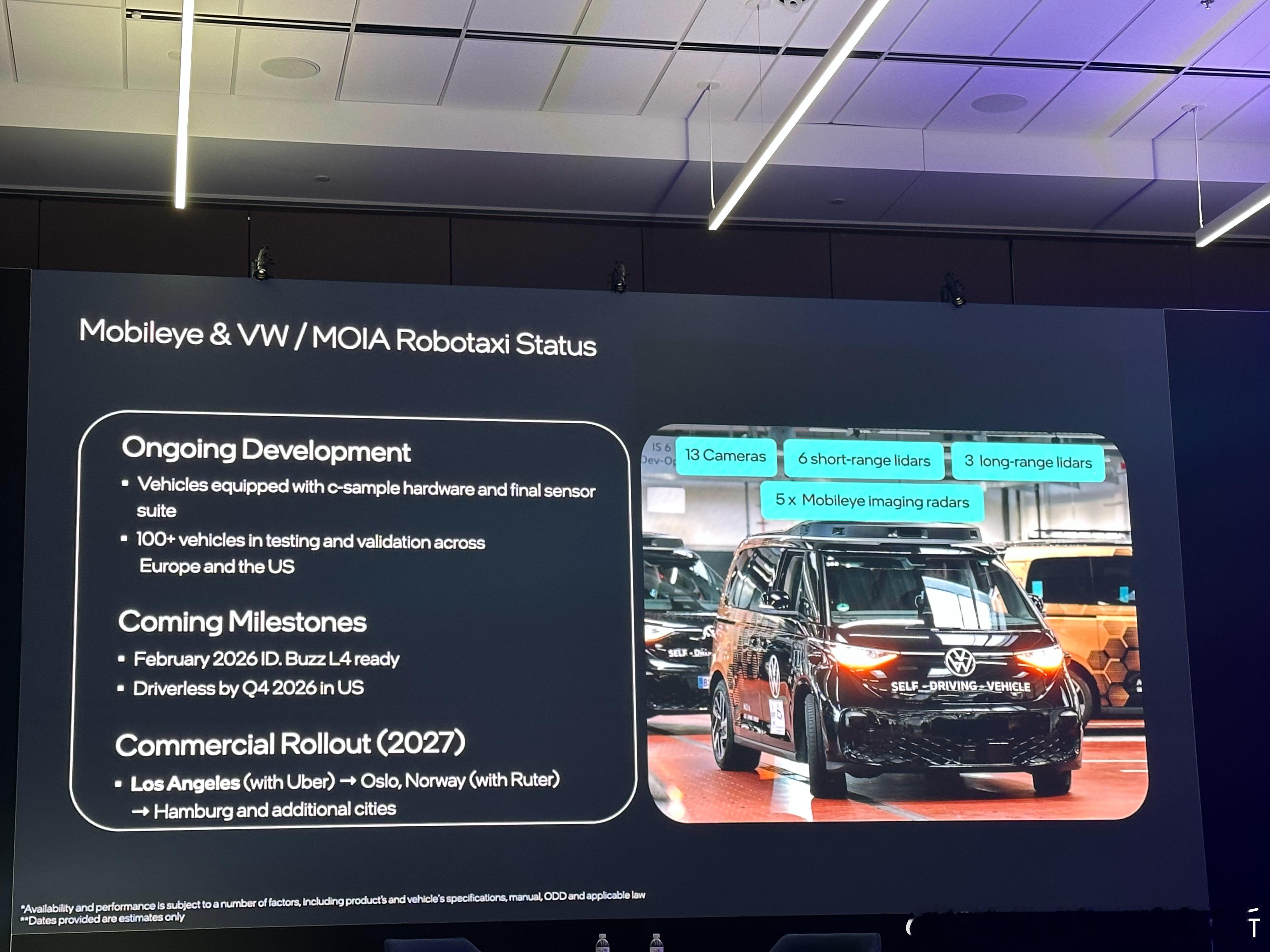 Mobileye的Robotaxi要商业部署了,基于ID.Buzz,2027年在美国洛杉矶(Uber)、挪威奥斯陆(Ruter)以及德国汉堡等地开始。自动驾驶ces2026