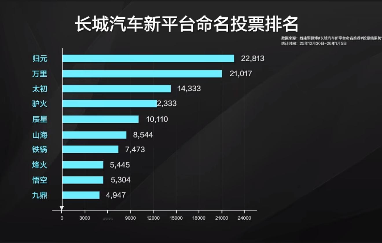 最近长城新平台的命名征集还挺激烈,连保定特色的“驴火”都来了不过最终是“归元”高票当选。魏建军宣布新平台命名归元这名字我觉得很妙,说人话就是追本溯源。“归”是回归造车本质,专注安全可靠;“元”是重构技术逻辑,找到发展核心。既呼应传统文化,又暗含技术哲学。魏总这次把命名权交给用户,让新平台也多了人情味比起参数竞赛,用户更关心车能不能长期用着舒心。用户要什么,新平台就给什么,不限制选择,这就是“归元”以用户为中心、服务全球市场的体现~
