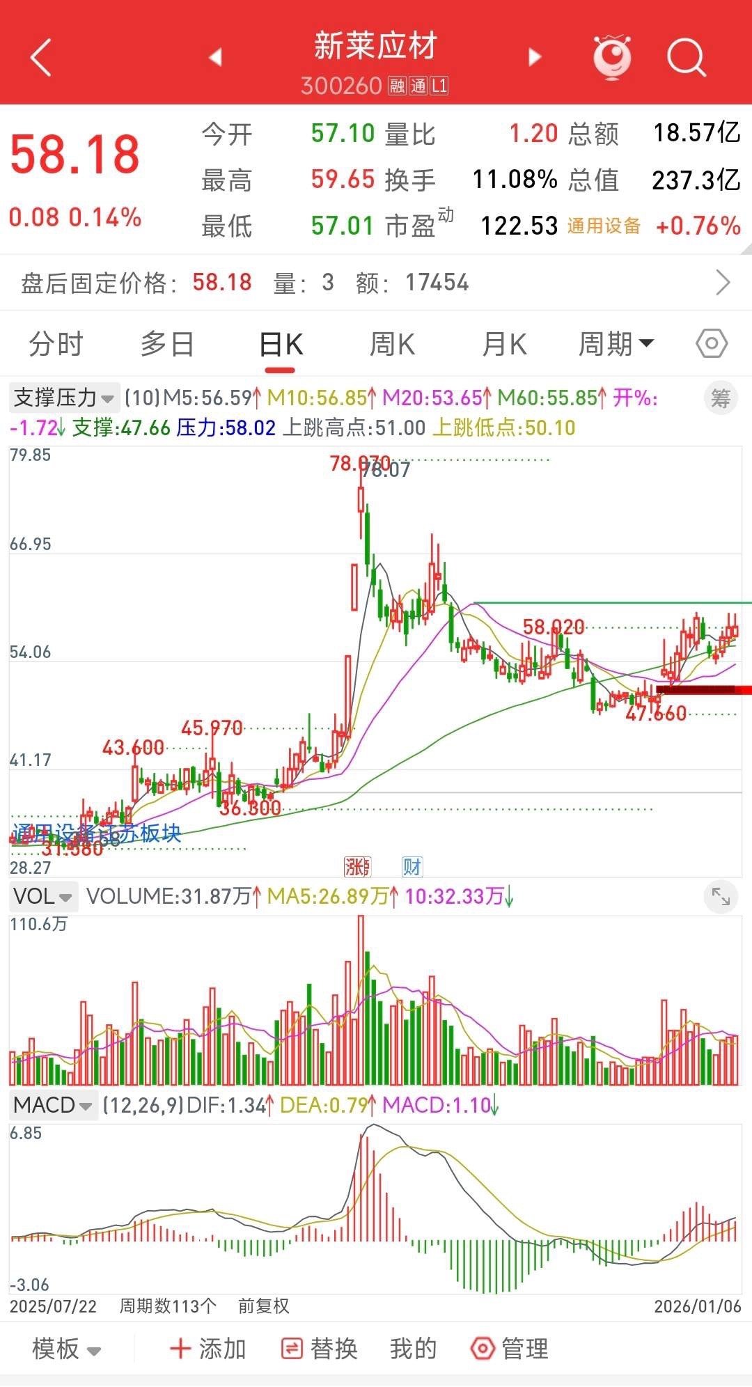 新莱应材,形态真不错,虽然不是热门板块的,但是对恐高的朋友来说,却是一个不错的选择。日线形态很不错,又到了箱体的上沿,要是能突破的话,向上又有空间了。新莱应材是半导体光刻机概念,前一波连板的原因,正是这个。网传给新凯来供货,有光刻机设备应用,还有半导体超洁净材料。