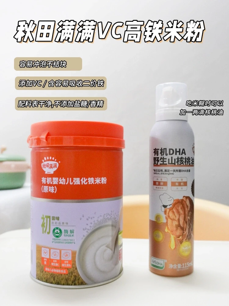 👩之前有好多妈妈问我是怎么给宝宝选高铁米粉的,我的标准是大牌且符合婴标、配料表干净、含二价铁,如果还含其他的营养成分维生素C、钙、锌那就更好了。🥣所以我是选秋田满满高铁米粉,含有二价铁(富马酸亚铁)6.0mg/100g,而且搭配VC更好的吸收。冲泡粉质细腻不易起坨。低敏配方,无乳粉,也没添加盐、糖、香精等,很适合作为宝宝的第一口高铁米粉‼️