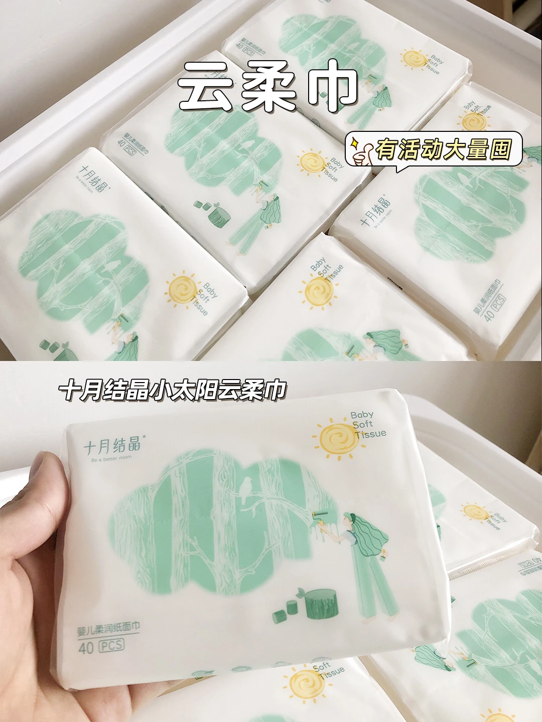 云柔巾的消耗量是三种纸巾类中消耗量最大的一种。以十月结晶一包40抽的为例,一般2-3天一包(新生儿时期消耗量更多),所以有活动放心囤!🔖
