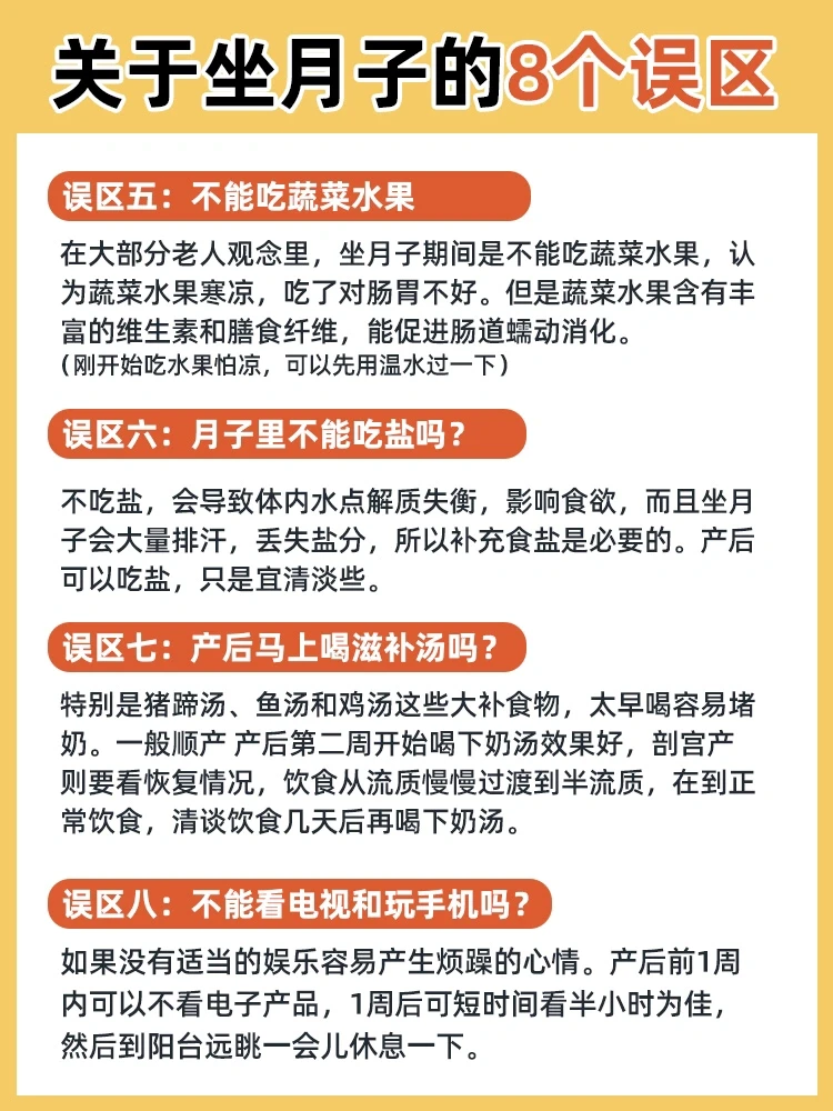 生完孩子还不是最揪心的,最揪心的是家里老人和我们坐月子的观念不同,结合产科医生给出的意见,我整理了8个传统坐月子的误区(图6/7)。