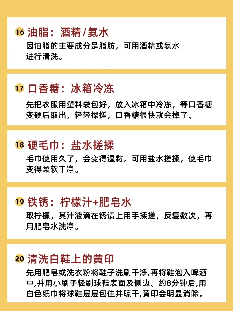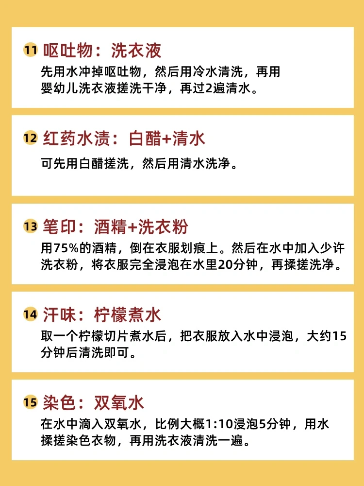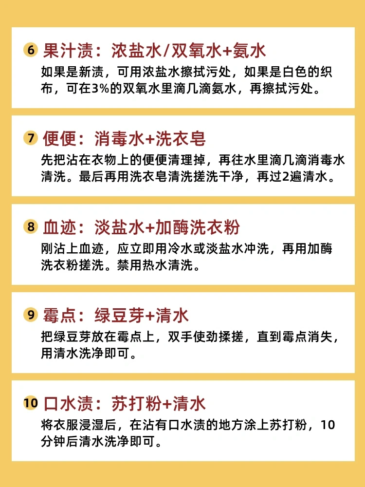 ✅ 果汁渍:浓盐水/双氧水+氨水