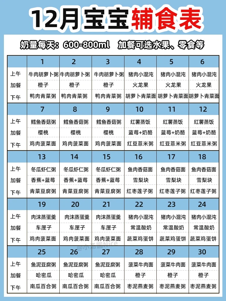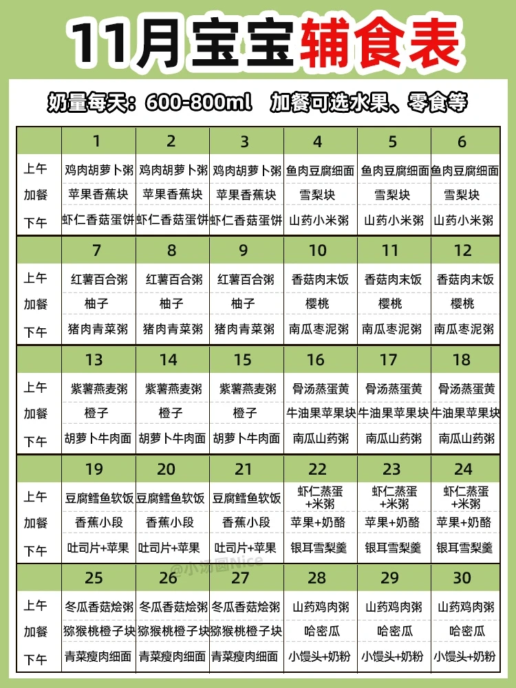✔️重点:给宝宝辅食添加的食物种类从单一到多种,新添加一种食物观察宝宝3天,有没有不适或过敏反应。
