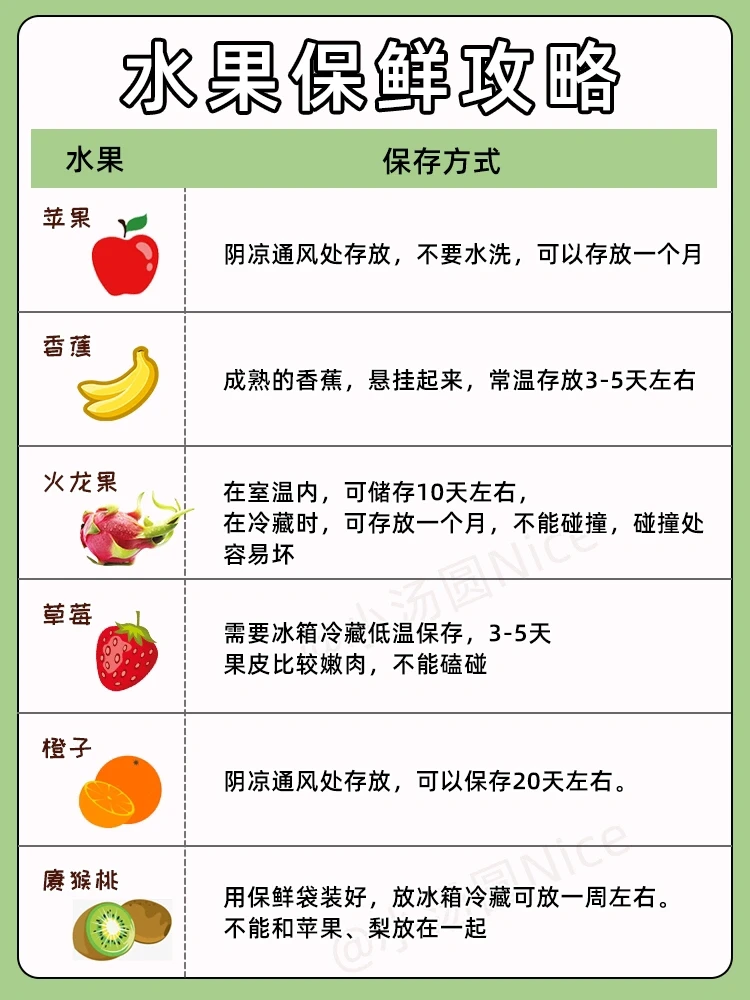 🍎水果存储方式: