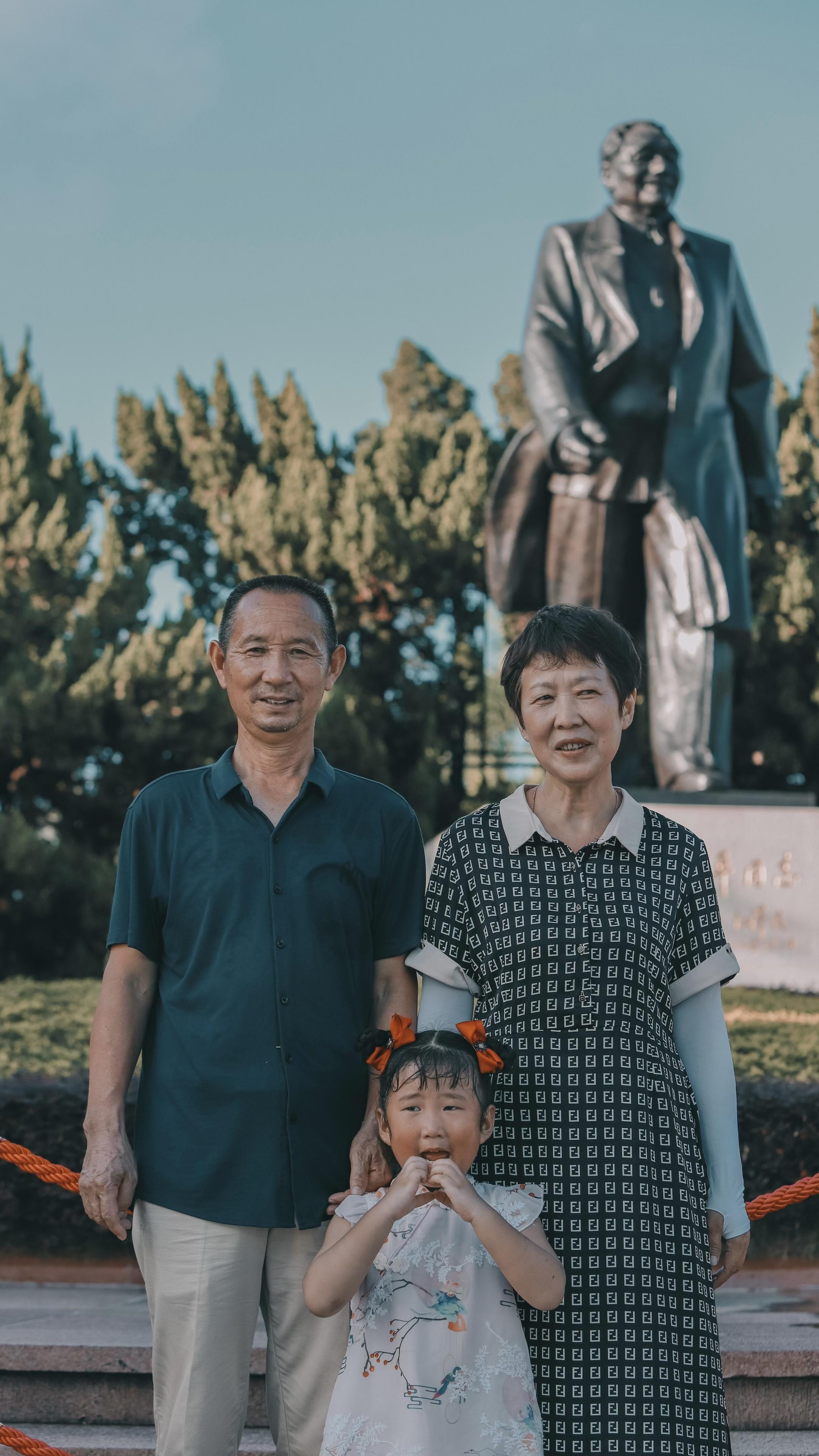 我拍到的全家福-群像。三代同游的治愈时光✨ 🌳 公园漫步记 👉 周末带着爸妈和娃去公园吸氧啦~ 阳光透过树叶洒下来,老爸举着小旗子走在前头像个老顽童🚩,老妈牵着孙女的手慢慢晃,三代人的影子被拉得老长👨👩👧👦。 ✅ 偶遇超有氛围感的雕像🗿,赶紧拉着爸妈拍合影!老爸突然正经地整理衣领,老妈偷偷拽我衣角说“头发乱了”,老一辈的仪式感真的好戳人❤️。 💡 小插曲:娃突然指着雕像问“爷爷为什么站那么直”👶,老爸蹲下来认真解释的样子,瞬间觉得这趟出门值了~ 👵 隔代亲名场面 👉 午后找了片
