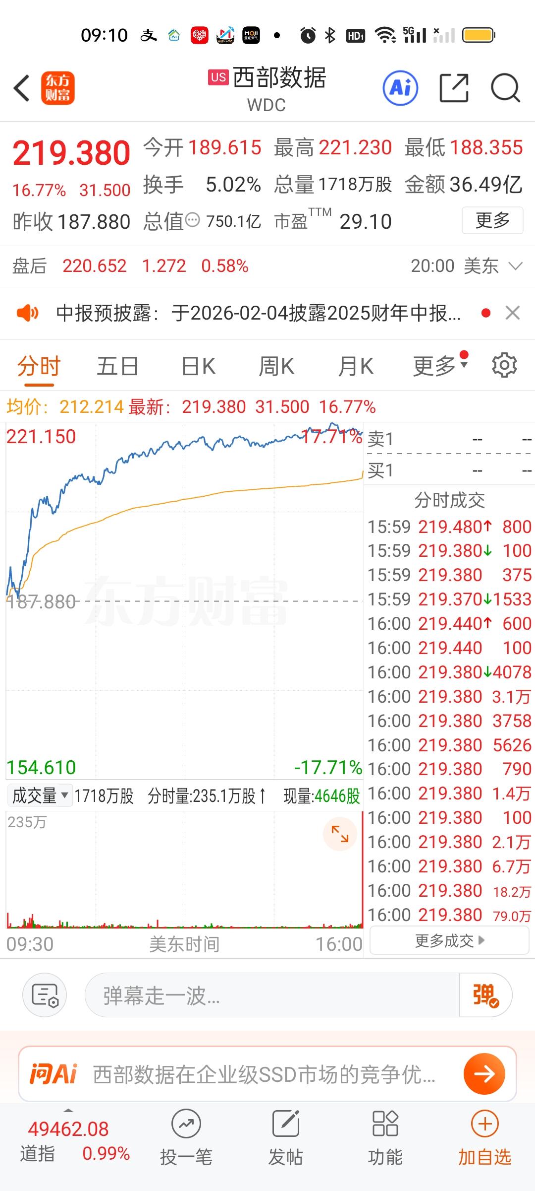 先锋准备颤抖吧!我要你颤抖啊!!!昨晚美股存储芯片龙头全部暴涨,其中闪迪暴涨27.56%,西部数据暴涨16.77%,希捷爆涨14.00%,美光大涨10.02%,涨幅全都在10%以上。就问你国内存储芯片跟不跟?如果跟的话,涨多少合适?再次恭喜重仓先锋的好朋友们!