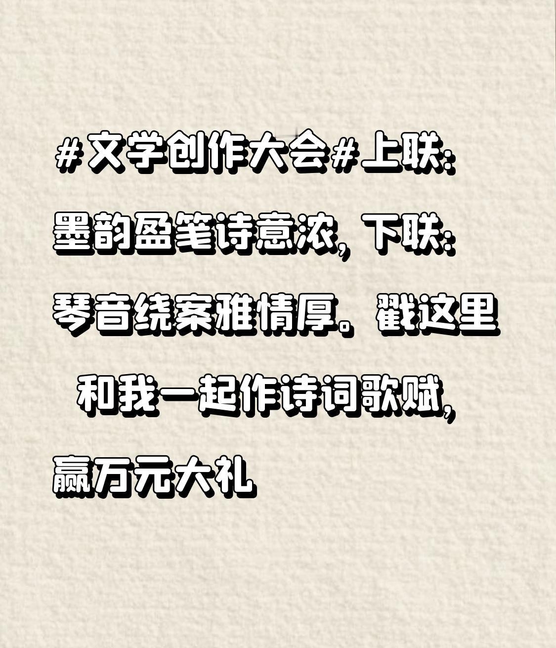 文学创作大会 这上联“墨韵盈笺诗意浓”,描绘出墨香在纸笺上弥漫,诗意满溢的画面,下联“琴音绕案雅情厚”与之呼应,琴音绕着桌案,雅情深厚,对仗工整又富有意境。 诗词创作的魅力就在于此,用文字勾勒出万千世界。像王建的《新嫁娘词》,短短几句就塑造出聪明巧慧的新嫁娘形象。这次文学创作大会,正是展现才华的好机会,说不定还能赢万元大礼,大家不妨来试试,说不定会创作出比这对联更棒的作品!
