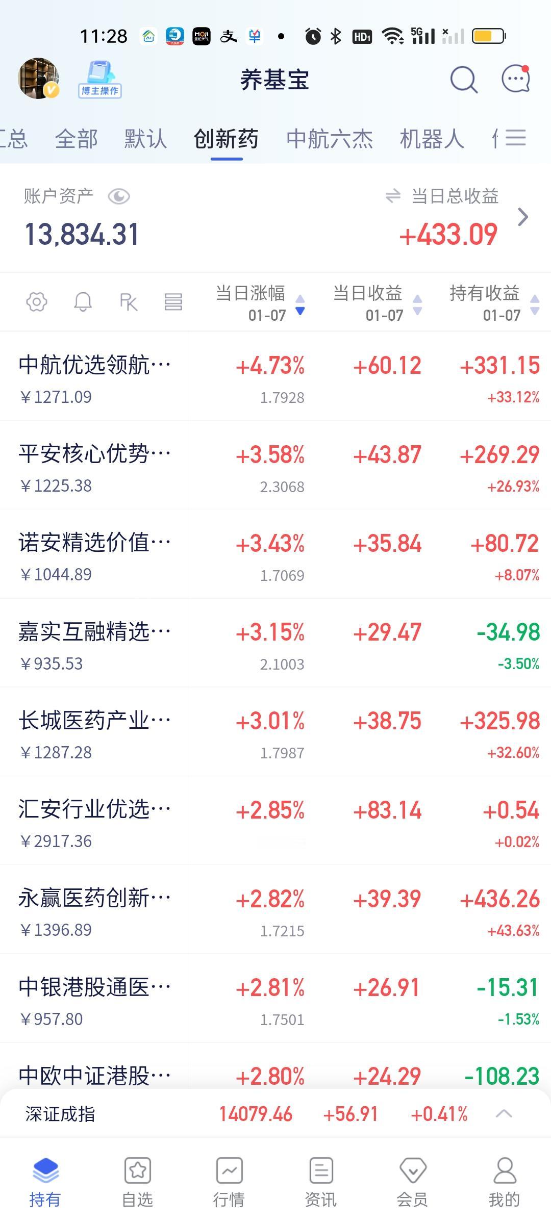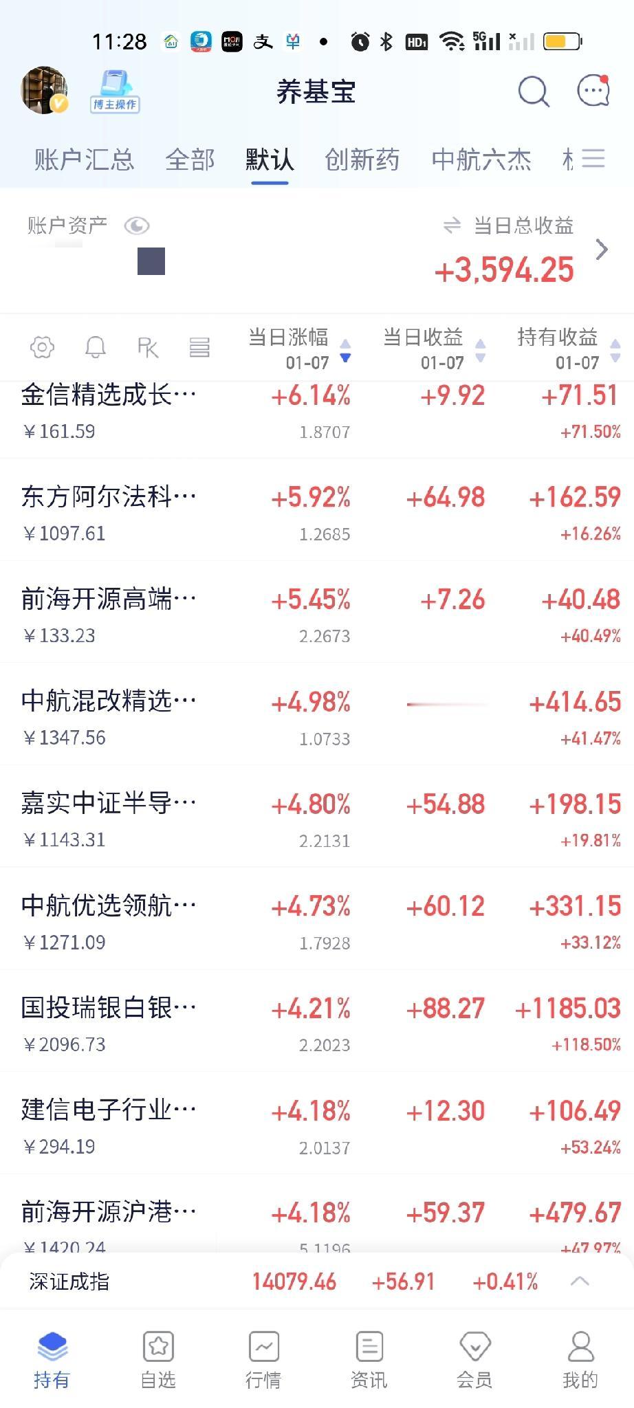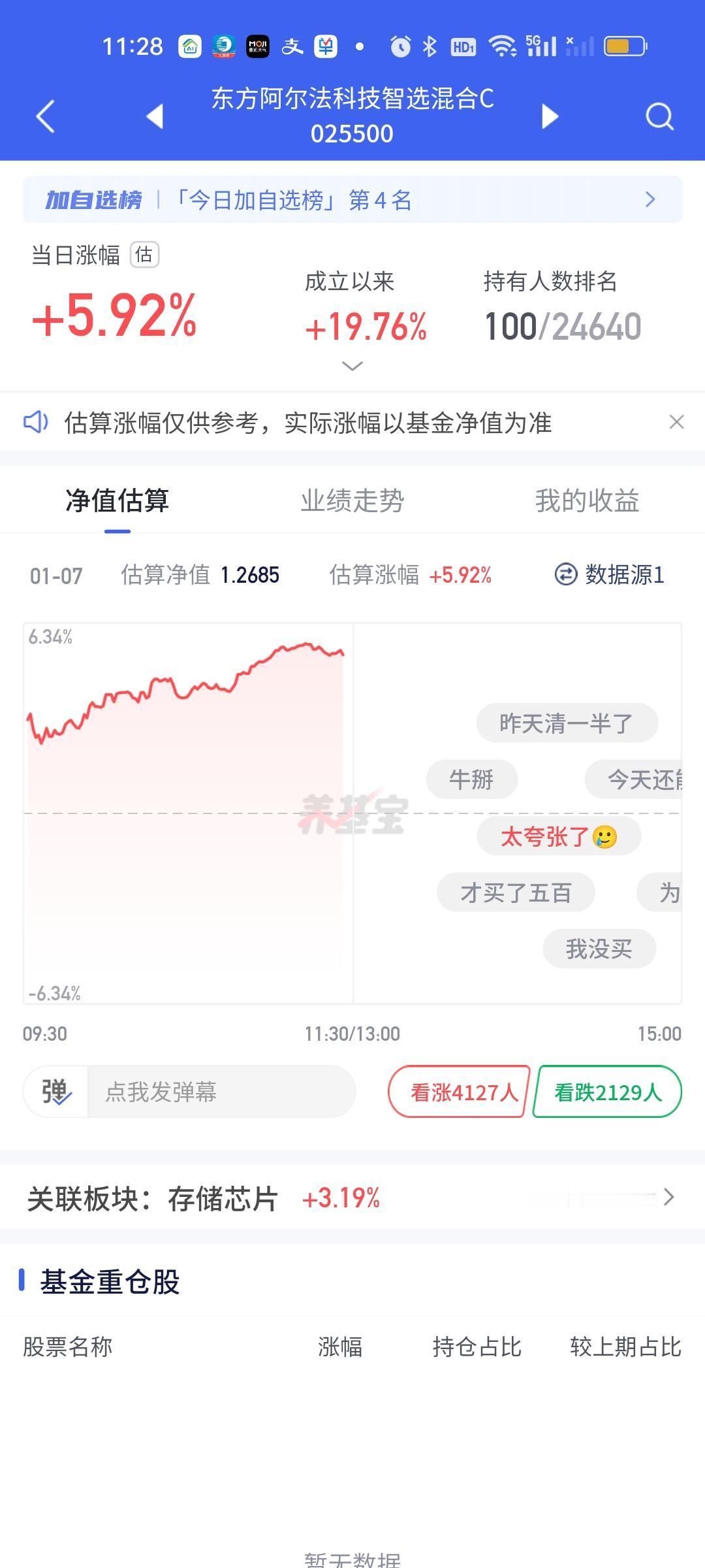 这个先锋今天到底怎么了啊?涨幅还不到老对手东方阿尔法的一半。开盘暴涨7.77%还以为冲着10%去了,结果瞬间跌到了2.77,直接没了5个点。怎能叫人不失望啊!对不对啊。 金信今天火爆了,预估爆涨6.14%,三个金信都差不多,选择哪个都是可以的。半导体,白银,创新药今天也都涨得非常不错。反倒是商业航天今天上午下杀了一下,下午能不能拉上来要看散户的力量了!