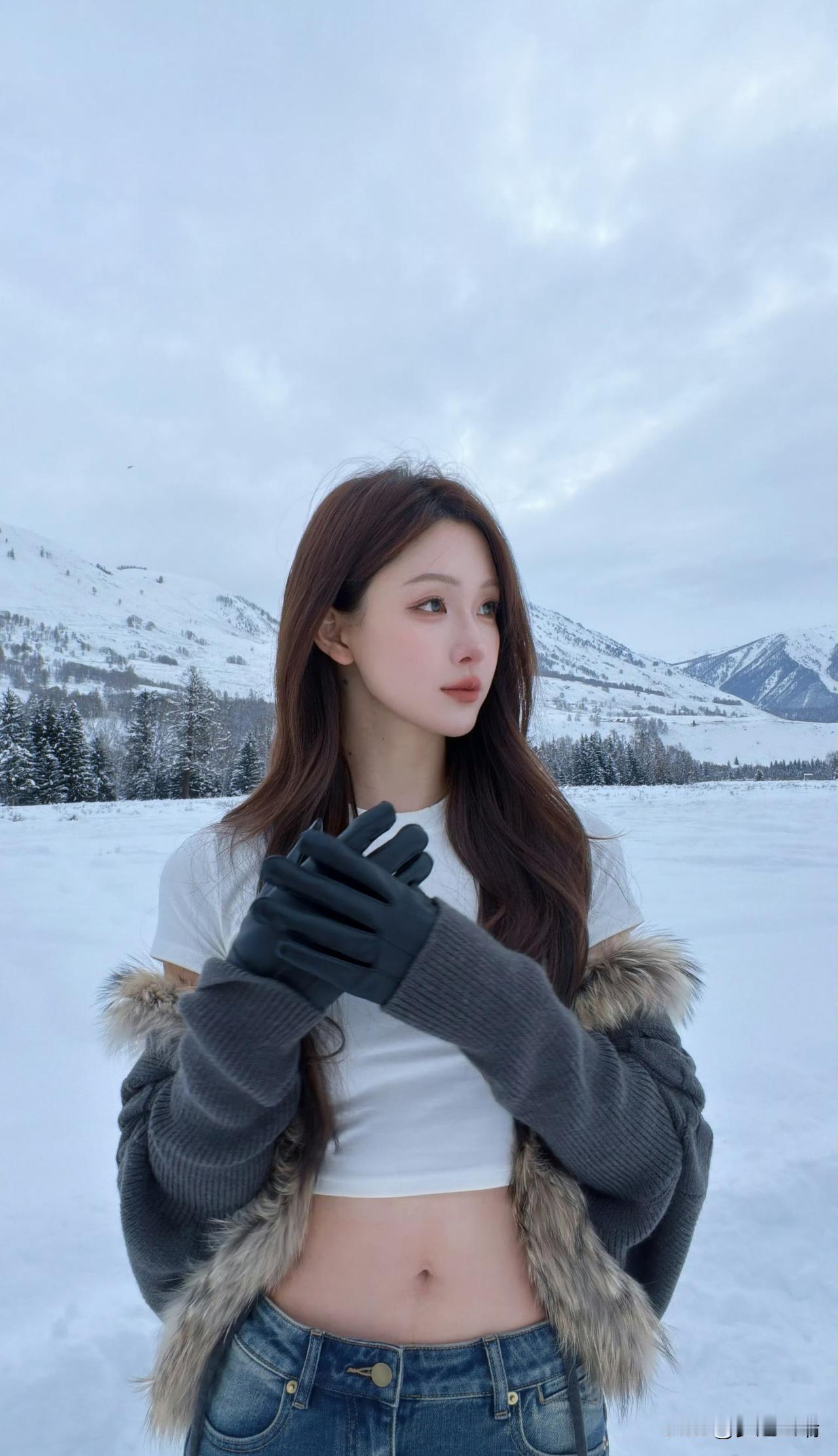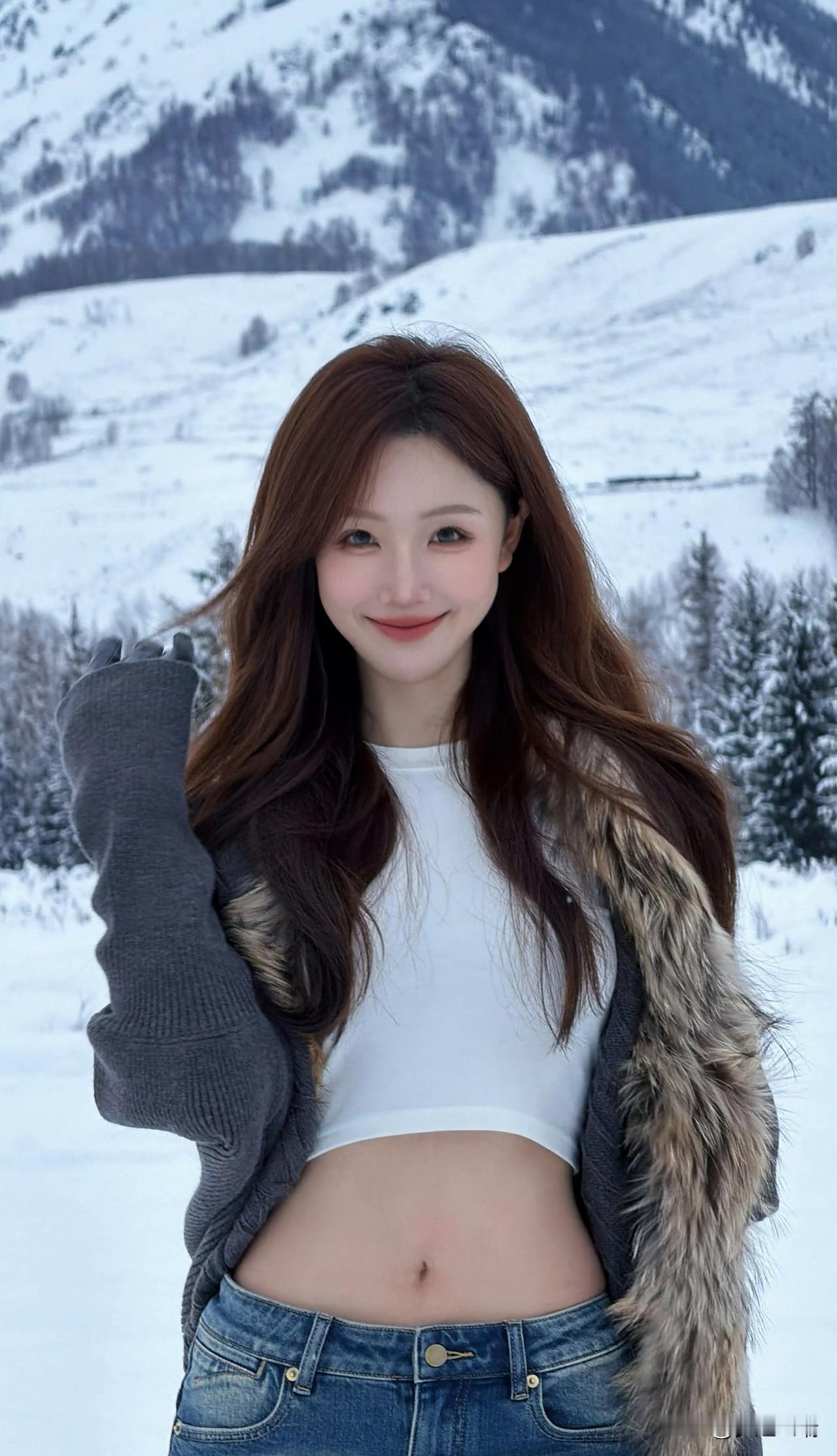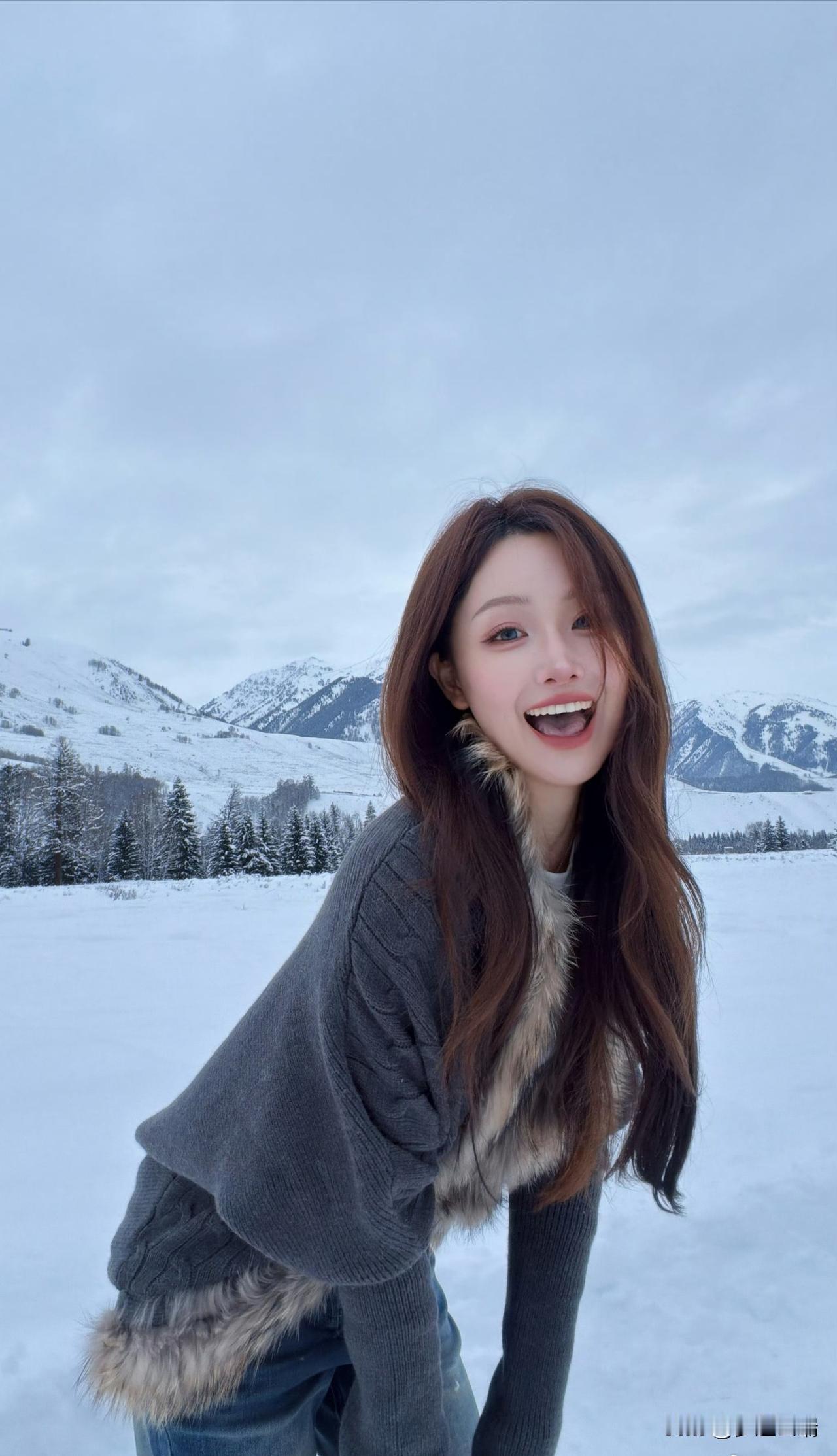 冬日雪景中的甜美少女,笑容灿烂,温暖如春!🌨️😊