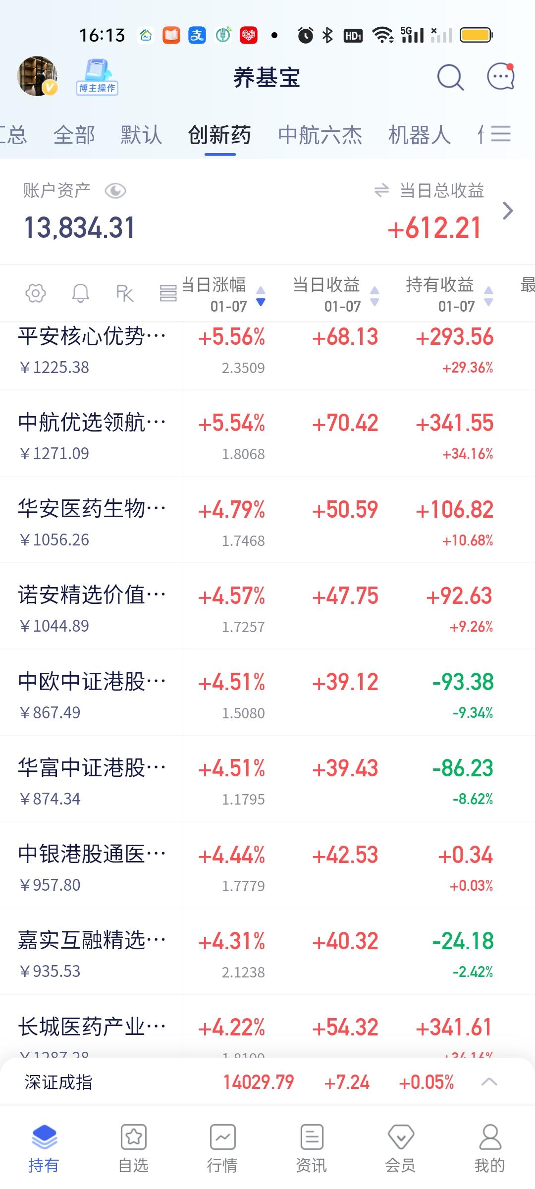 你能想象吗?今天跌幅最大的居然是商业航天,又有多少人今天加仓了呢?绝大多数人恐怕会害怕吧,害怕它会继续下跌。此外金融科技,恒科,地产,软件今天跌幅也在1.5%左右。机器人总体是微涨的局面。 今天涨幅靠前的是半导体和创新药,特别是半导体设材料与设备今天涨幅普遍都在5%以上,创新药的涨幅也都在4%以上,但不需要减仓,继续格局,继续放大利润就可以。