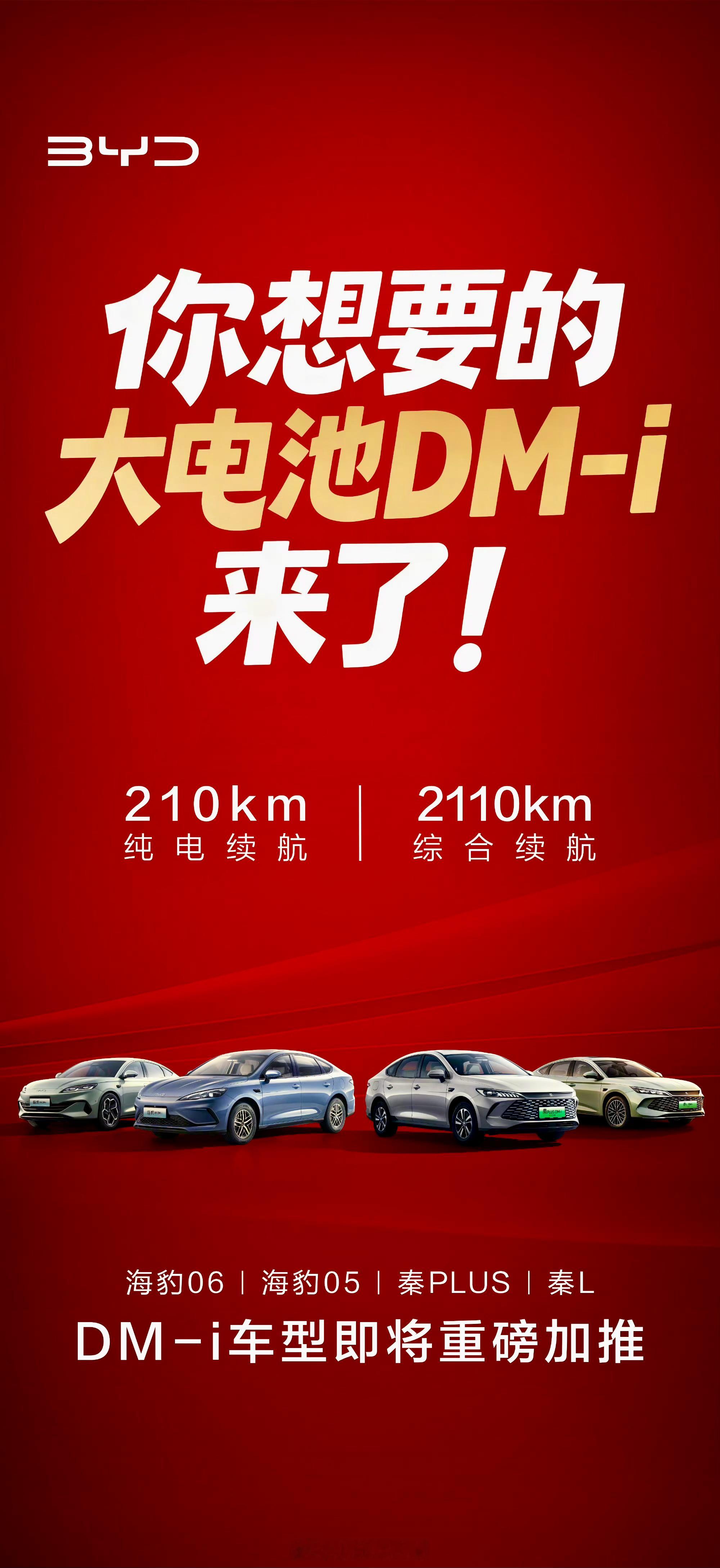 迪子2026年刚开年双王炸,比亚迪就给咱整了个大活儿!国家插混新规落地后,长续航、低能耗的混动车成了香饽饽。比亚迪直接放大招,给秦PLUS DM-i、秦L DM-i、海豹05 DM-i、海豹06 DM-i这些爆款车,推出了大电池长续航版本,CLTC纯电续航直接突破210km,比同级车普遍80 - 120km的水平翻了一倍,综合续航更是超2110km。这背后靠的是第五代DM技术升级,搭载了大容量插混专用功率型刀片电池,能量密度蹭蹭涨,再加上AI能耗管理,纯电续航翻倍。多100公里续航,就是多了100公里的从容,每天通勤40km的小伙伴,210km纯电续航,“5天通勤 + 周末短途出行”完全没问题,用电无压力,简直爽到飞起。