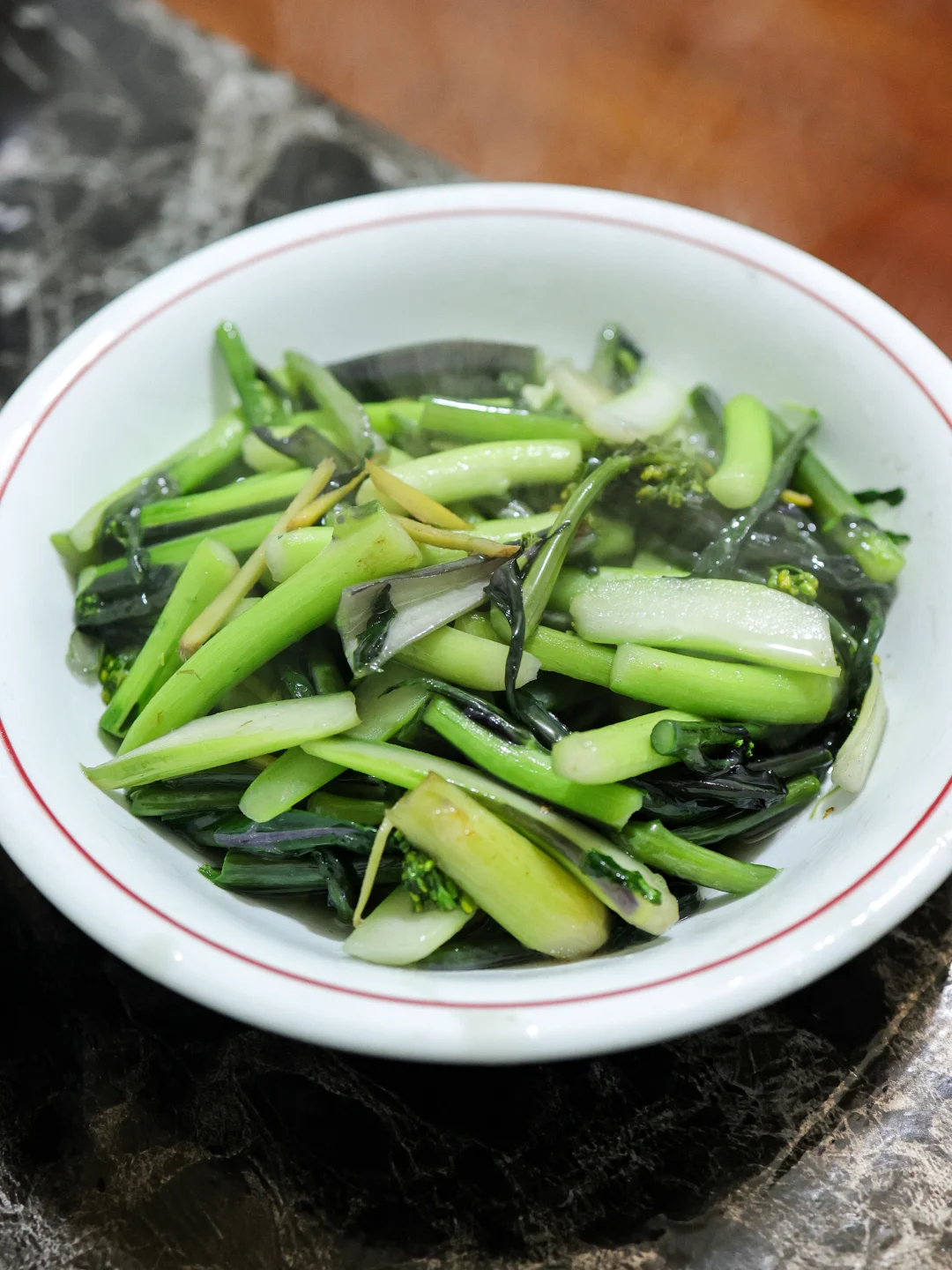 庆幸这道菜是唯一一道舍得放盐的菜了,甜糯的红菜苔不返苦味,好吃。