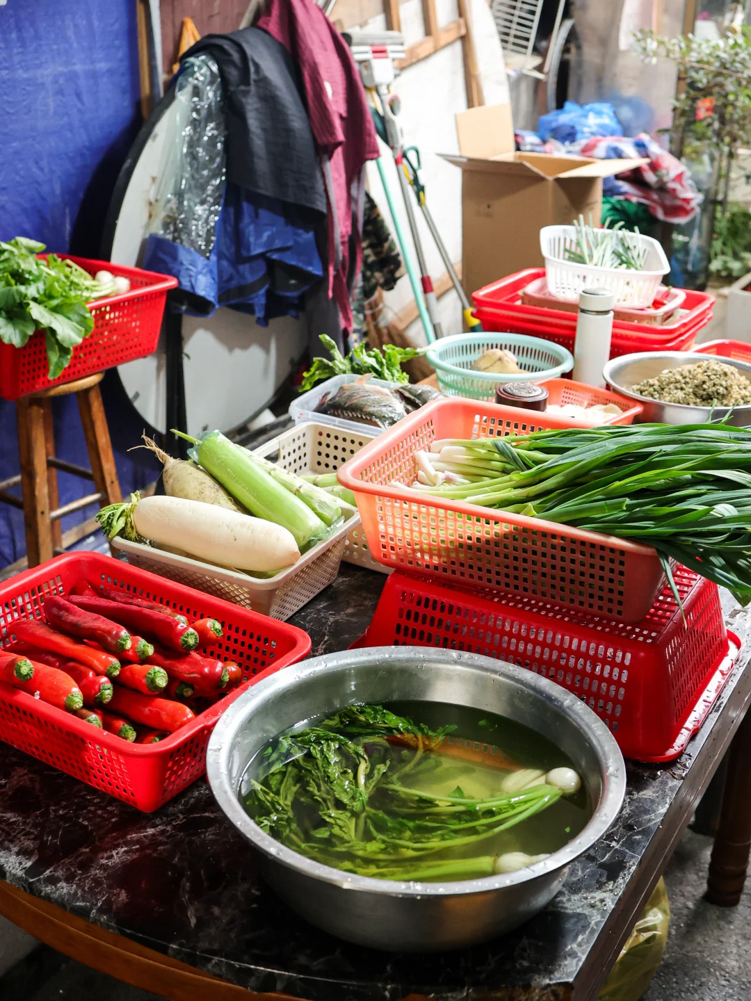 冒着锅气上桌,吃了一口,我和朋友面面相觑:没放盐吧…第一口吃下来会感受到大蒜叶的香气与干辣椒非常突出的辣味,腊牛肉的口感也很好,不干柴,切得薄又透亮,但是没盐味,第一口只有辣味!