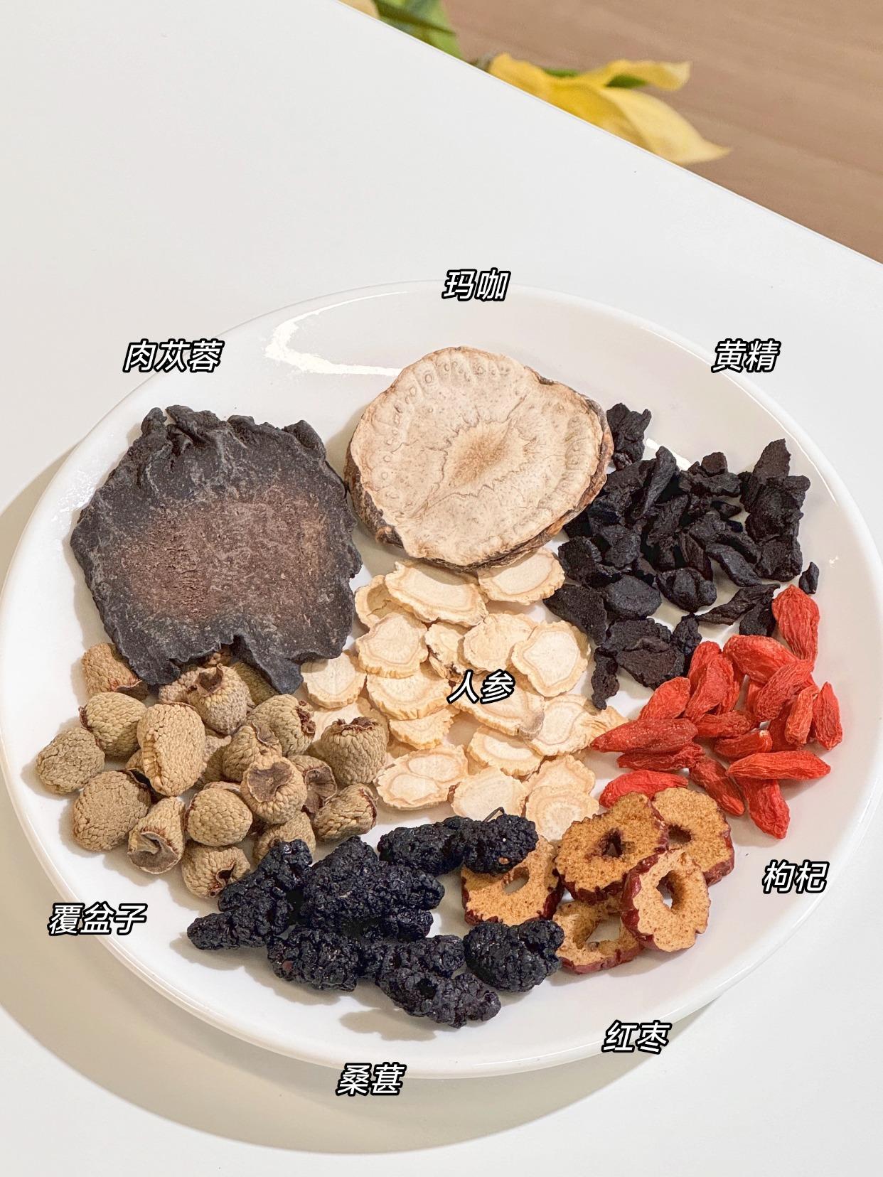人参、肉苁蓉、玛咖片、桑葚、枸杞、红枣、黄精、覆盆子